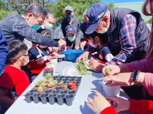 植樹節將屆,桃園榮家於今(10)日上午辦理「大手拉小手園藝童樂會」,邀請加貝爾幼兒園師生前來,在家區內開心農園和長輩植樹、種菜,進行食農教育,並與爺爺奶奶在榮家咖啡館開「童」樂party。
