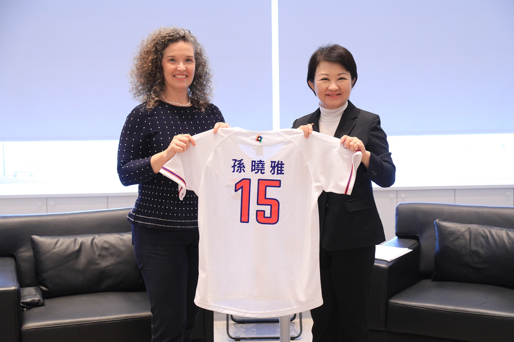 有關正如火如荼開打中的世界棒球經典賽,盧市長也說,台中獲得世界棒壘球總會認定為「世界棒球之都」,經常舉辦各種棒球頂級國際賽事,她知道孫處長也是棒球迷,上任後以體育活動兼員工家庭日方式主辦AIT壘球錦標賽,也曾於去年7月觀賞中華職棒明賽,可惜這次世界棒球經典賽因行程因素無法前來,歡迎未來孫處長有空前來台中觀賞中華職棒或亞錦賽等熱門賽事,感受台中球迷的熱情。