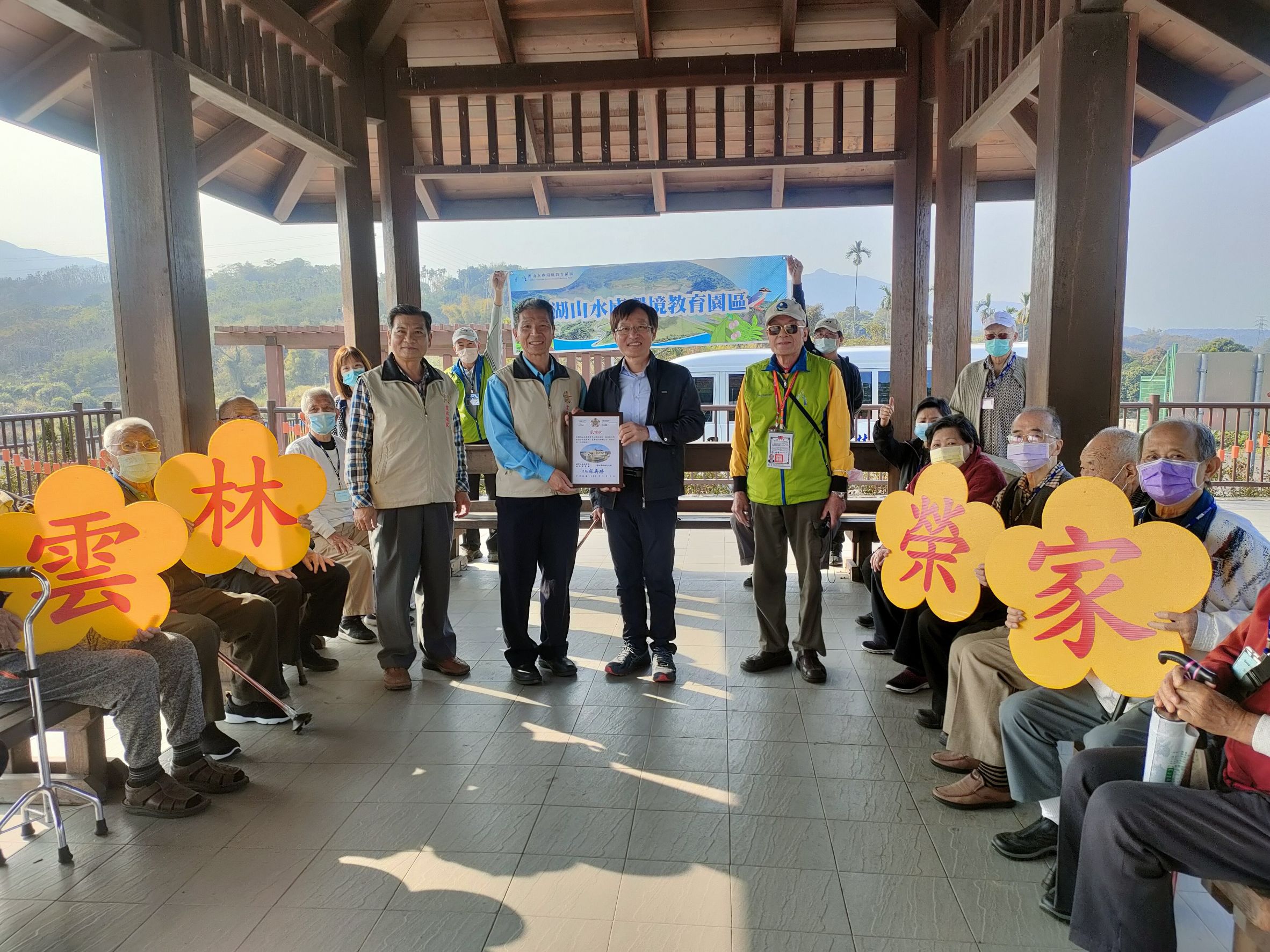 活動第一站到達湖山水庫,參訪環境教育園區,管理中心考量住民年邁,特別開放水庫壩頂上方景觀台,讓長輩們能居高臨下,飽覽廣闊的湖面風光。