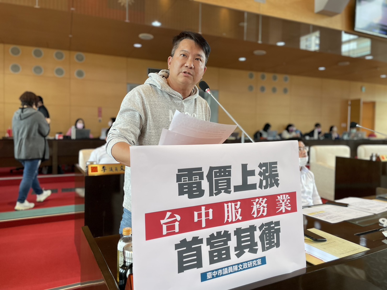 陳議員強調,台中市服務業登記家數16萬6千家,佔全市家數比重達76.37%,養活無數個小家庭和基層勞工。他批評,現在國內已經萬物齊漲,店家成本壓力大增,又要接著漲電費,不只讓通膨雪上加霜,更大幅壓縮了業者生存空間,對台中的服務業,恐將產生嚴重的衝擊。