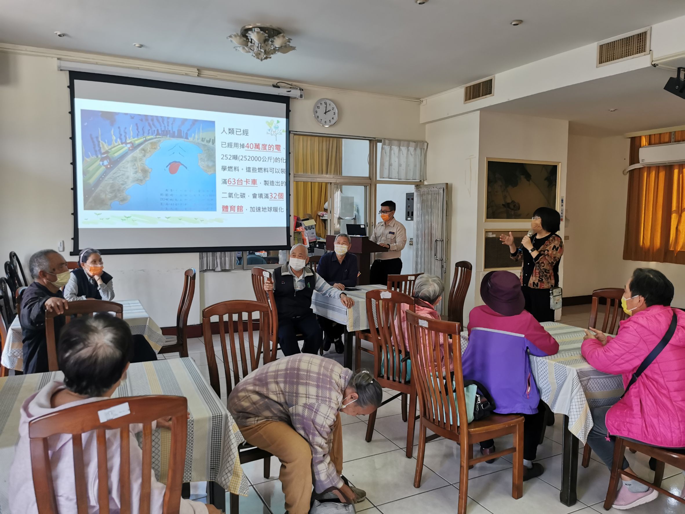 為響應此活動,榮家摘錄《一秒鐘的改變》書中內容,以簡報播放極具震撼力的畫面,讓長輩知道短短一秒鐘之內,我們是如何破壞自己的家園,但相對也學得如何愛護它,從平時落實資源回收,使用高能源效率產品以減少能源消耗等方式,進而培養愛護地球的觀念。