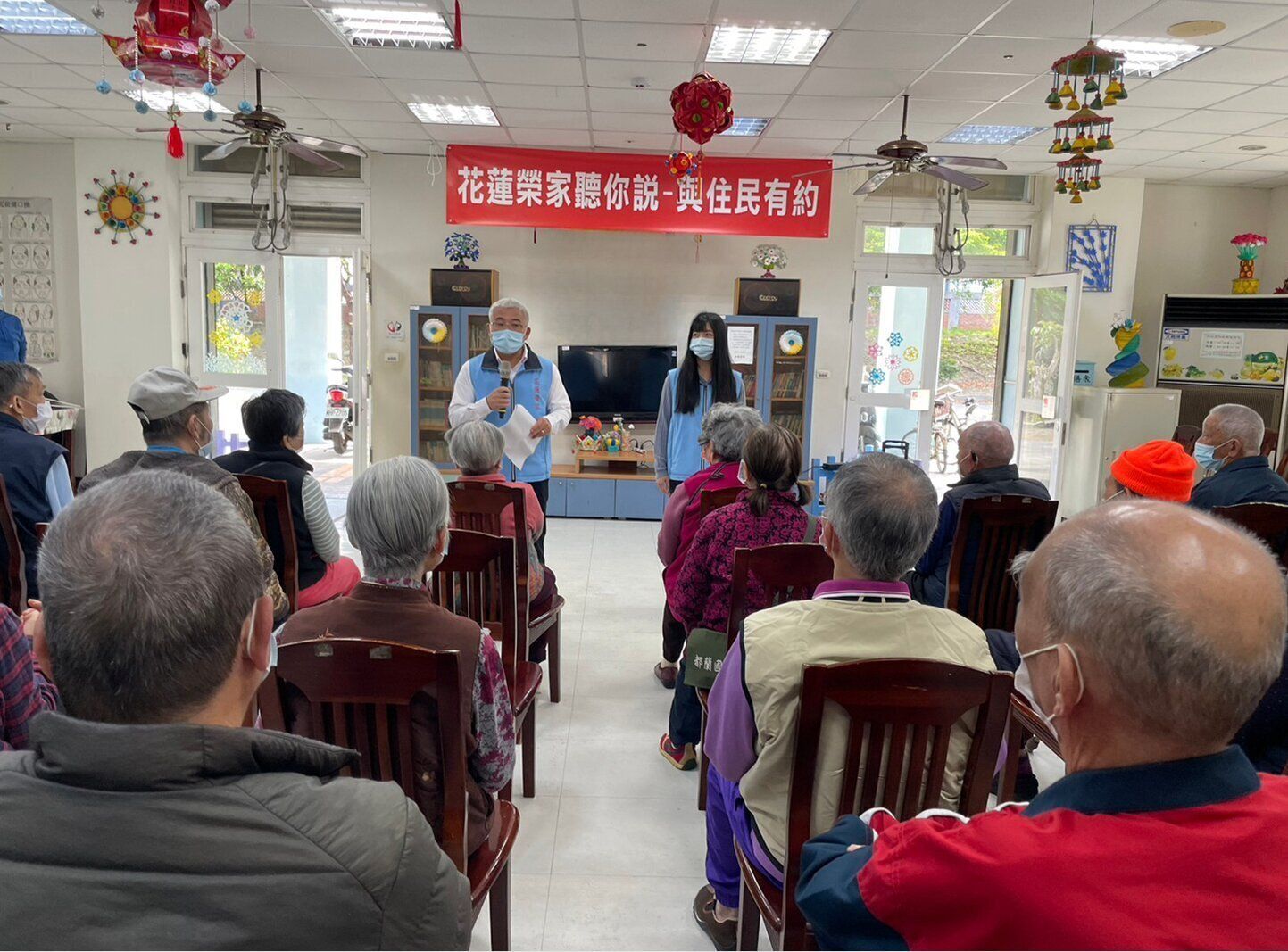 花蓮榮家日前結合三位堂長新職介紹時機,特舉辦「聽你說-與住民有約」,不同以往的是此次座談採各堂隊分別進行,每個堂隊排訂2小時,由張道初主任帶各組室主管及堂長與住民面對面進行雙向溝通仔細聆聽住民需求。