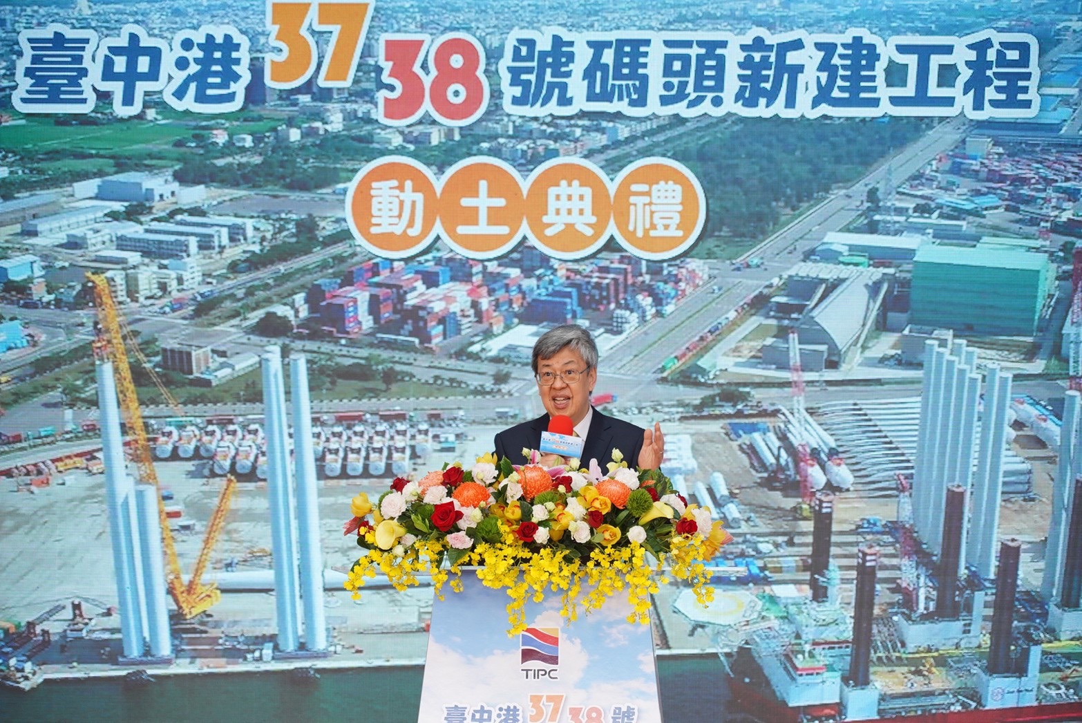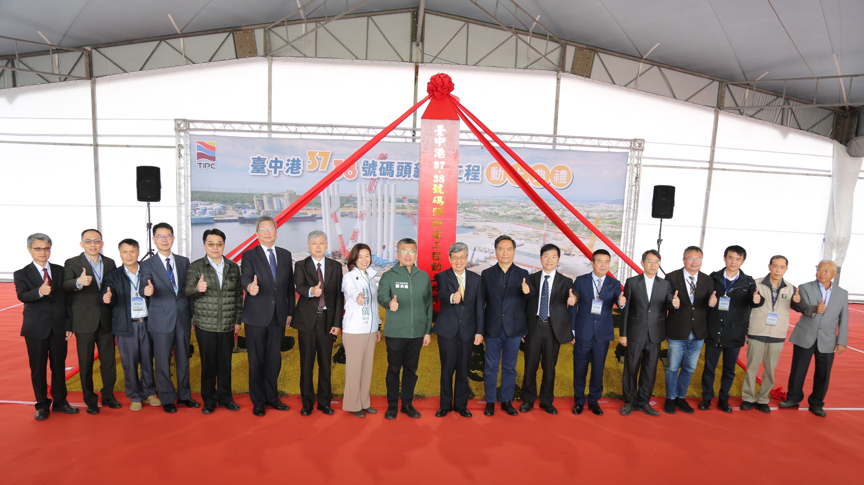 臺灣港務股份有限公司為配合國家推動離岸風力發電政策,今(26)日於臺中港38號碼頭後線舉辦「臺中港37、38號碼頭新建工程動土典禮」,由行政院陳建仁院長主持,並率行政院羅秉成政務委員、交通部祁文中常務次長、經濟部能源局游振偉局長及各機關代表出席,並邀請立法院蔡其昌副院長、林靜儀立法委員及臺中市政府交通局郭志文主任秘書蒞臨,共同為臺中港37、38號碼頭新建工程開工動土儀式祈福,典禮順利圓滿成功。