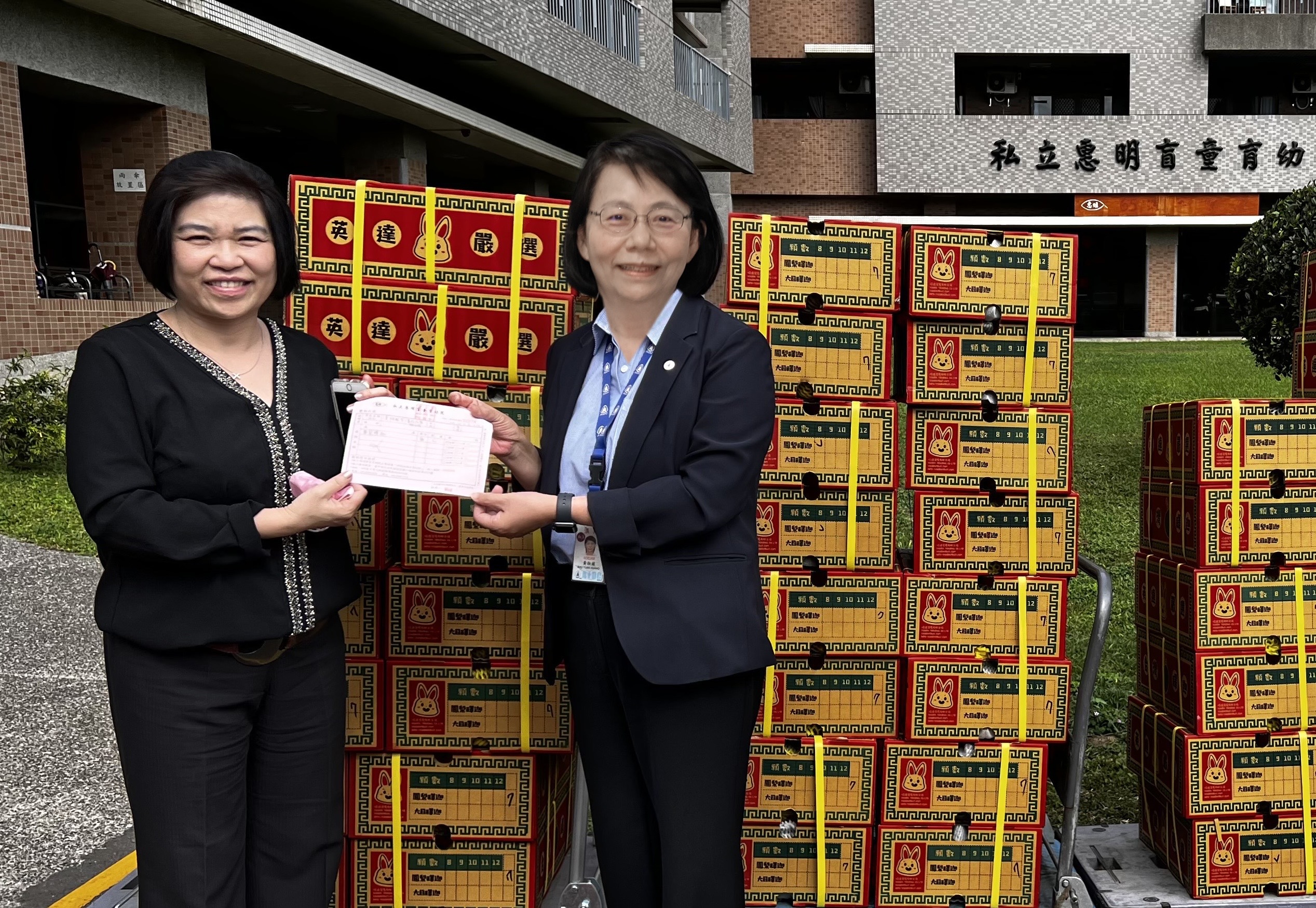 漢翔公司近年先後向小農或弱勢團體採買柑橘、鳳梨釋迦、及文旦,近期再次選購當季新鮮且富含營養的鳳梨釋迦,也取其諧音「事事皆佳」的寓意,由漢翔公司黃淑媛副總經理代表胡開宏董事長致贈給基督教惠明盲人福利會,分享好運給每一位院生,祝福在人生的旅途上勇於克服身體的障礙,激發無限的可能。