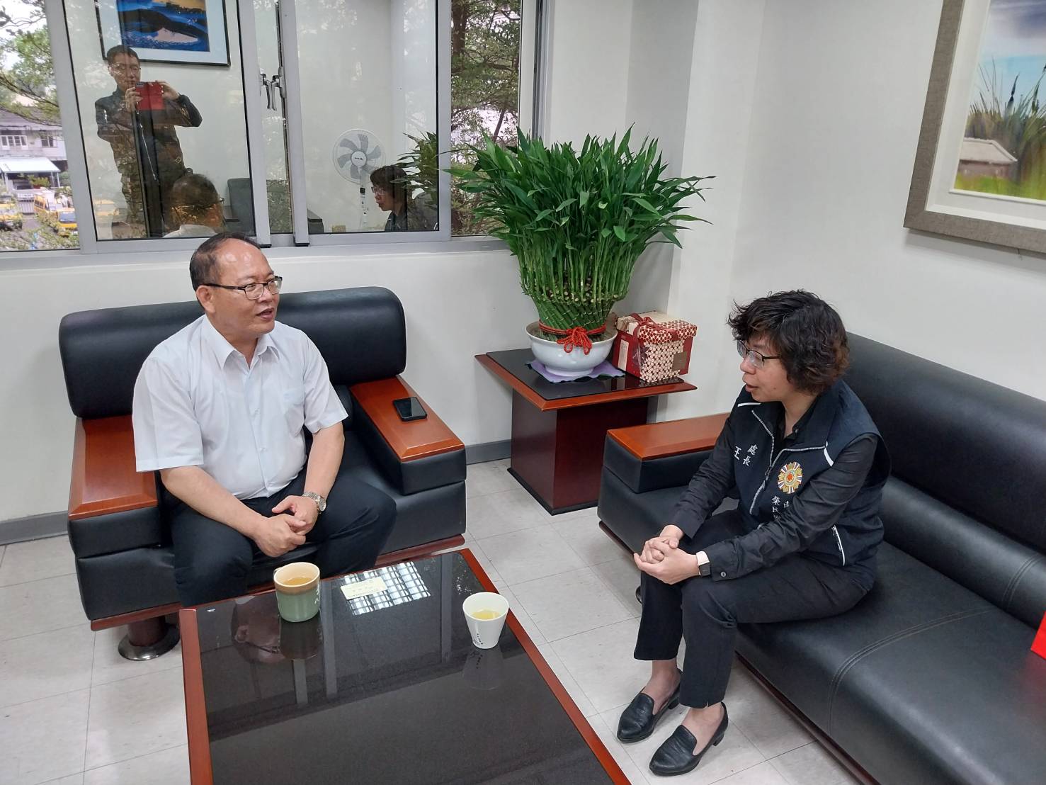 南投縣榮民服務處王怡文處長於日前偕同仁拜會南投縣政府社會及勞動處林志忠處長、觀光處陳志賢處長,強化雙方連繫管道,建構綿密的服務網,提供退除役官兵各項服務資源,協助推廣相關服務照顧事宜,也針對退除役官兵各項權益事宜交換意見,期望透過合作機制,使退除役官兵在需要協助的時候,都能夠獲得立即有效的支援及服務。