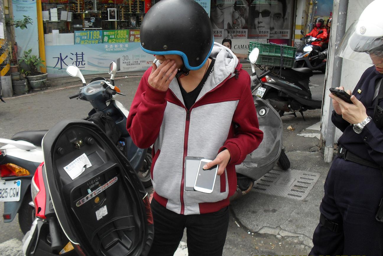 圖說:警方盤查車手的機車。(記者陳羿翔翻拍)