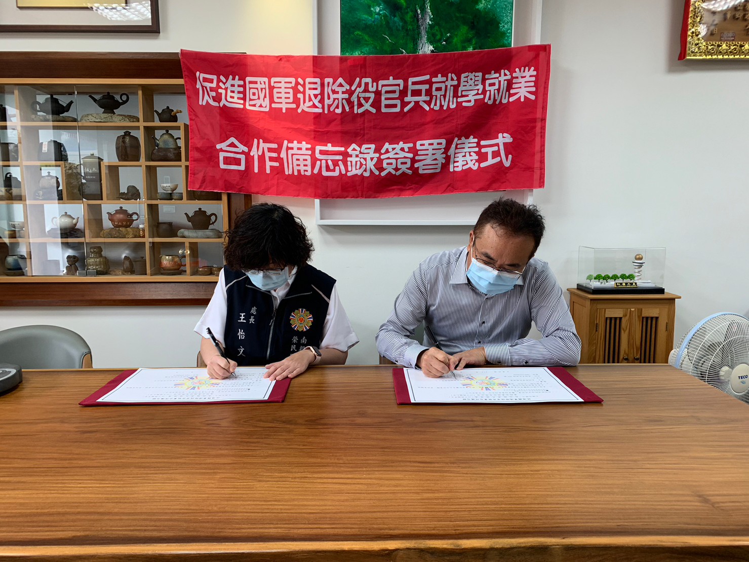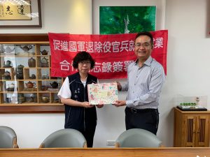 南投縣榮民服務處日前由處長王怡文偕就業站同仁,拜會南投縣南崗工業區富帥企業股份有限公司,就「媒合退伍官兵就業」議題與總經理董正宗交換意見。隨後雙方以「提供優質職缺」、「保留員工總人數一定比例職缺進用退除役官兵」之協議內容簽署合作備忘錄,以期深化合作機制,協助有就業需求之退役袍澤順利就業。