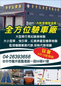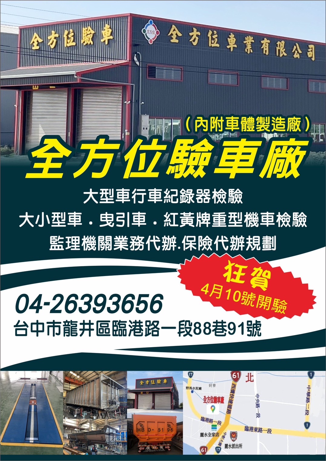 由展曳企業主導,服務最周到、驗車最用心、相關周邊輔助最到位的全方位驗車廠在海線盛大開幕,開幕當天冠蓋雲集,到場祝賀嘉賓人山人海。.