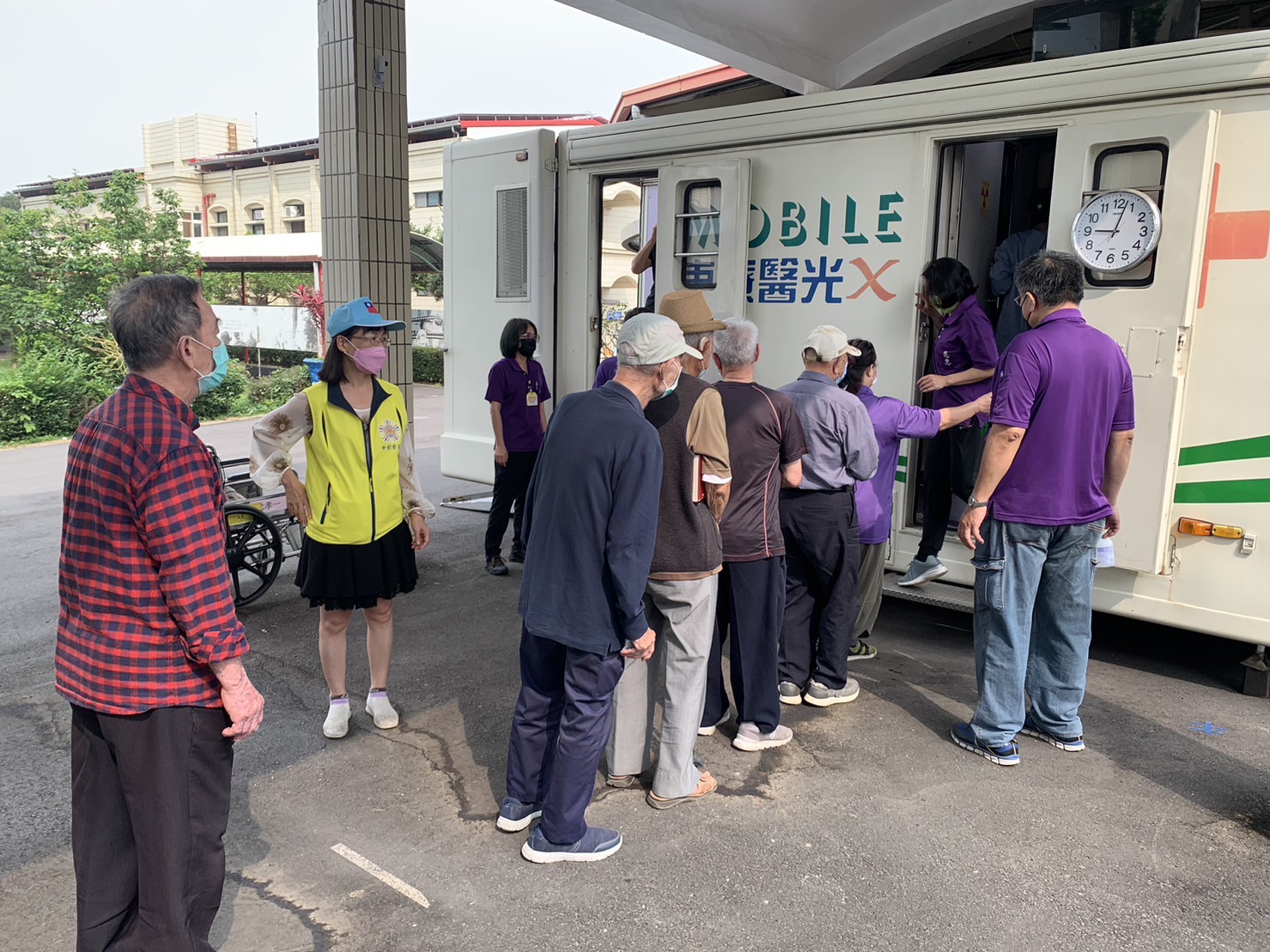 中彰榮家因住民多屬高齡,為友善長者避免舟車勞頓,並落實輔導會榮民醫療體系三級醫療政策,乃協調臺中榮總埔里分院安排X光醫療巡迴車抵家區進行胸部X光檢查,並於4月13、14日(星期四、五)連續二日爲長輩及職員工們進行檢查,住民不需費時乘車至醫院,在榮家內就可完成檢查程序,並由埔里分院胸腔內科專科醫師協助判讀胸部X光影像結果,巡迴專車現場長輩排隊受檢,從登記檢查各流程井然有序,長輩彼此間寒暄問暖,對於胸部x光檢查表示肯定,直說可以免費健康檢查真是好福利。