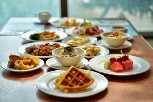 豐盛佳餚涵蓋生菜沙拉自助吧、冷盤沙拉區、海鮮區、壽司區、蒸籠區、主廚特製熱食區、經典湯品區、現切牛肉及火腿台、炸物區、麵包區、水果甜點區。這次更是加碼單筆消費滿NT$2,000,贈送一張三溫暖免費入場招待卷(價值NT500),滿NT$4,000增兩張(以此類推),真的很貼心。樂滿地自助百匯用餐收費:成人NT1,080+10%/位 ;兒童NT680+10%/位。