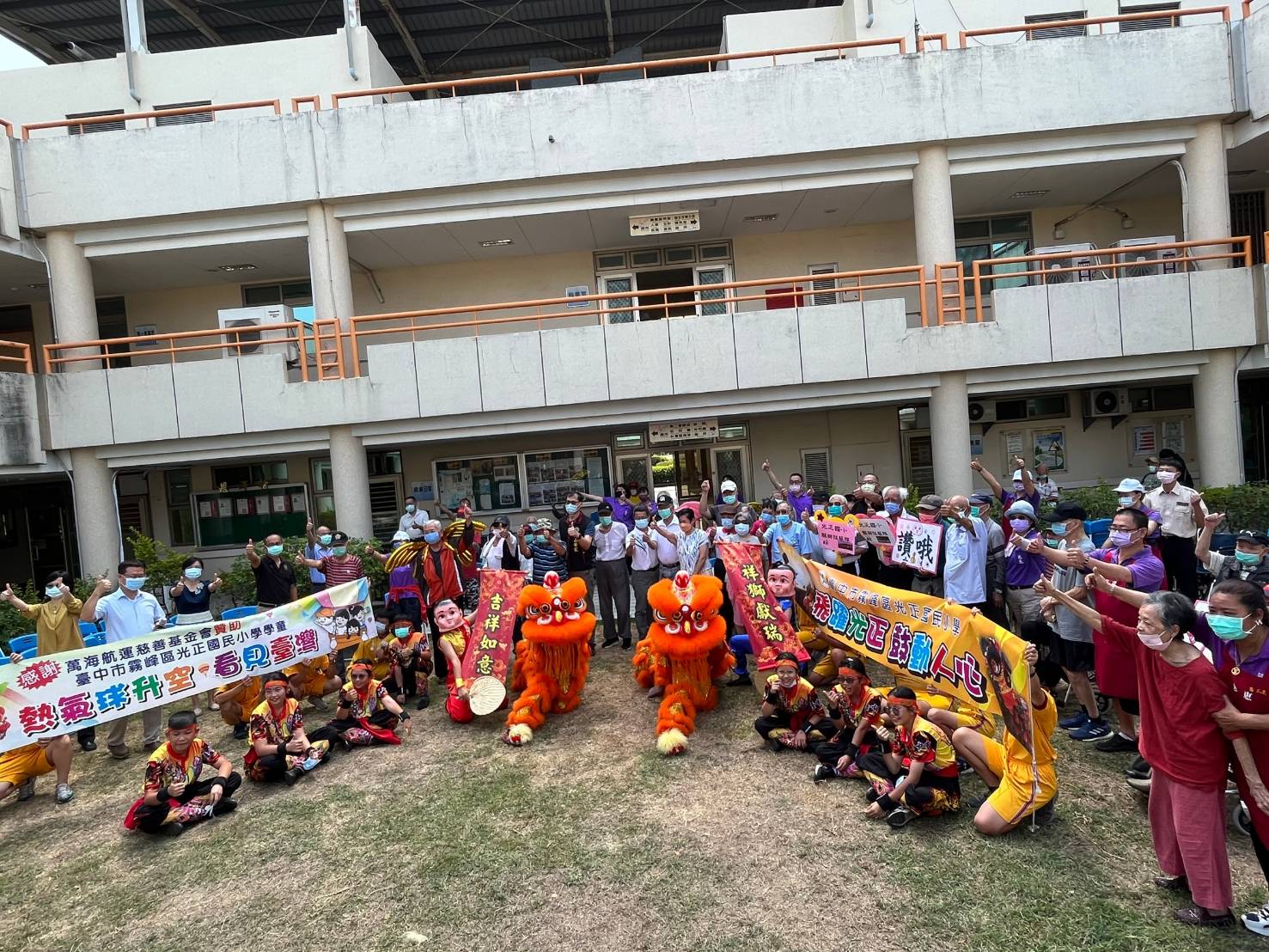 台中霧峰光正國小為了讓畢業旅行更具意義,首站來到岡山榮家,與阿公阿嬤寒暄問暖,激發世代交流火花,更安排醒獅鼓藝公益快閃活動。