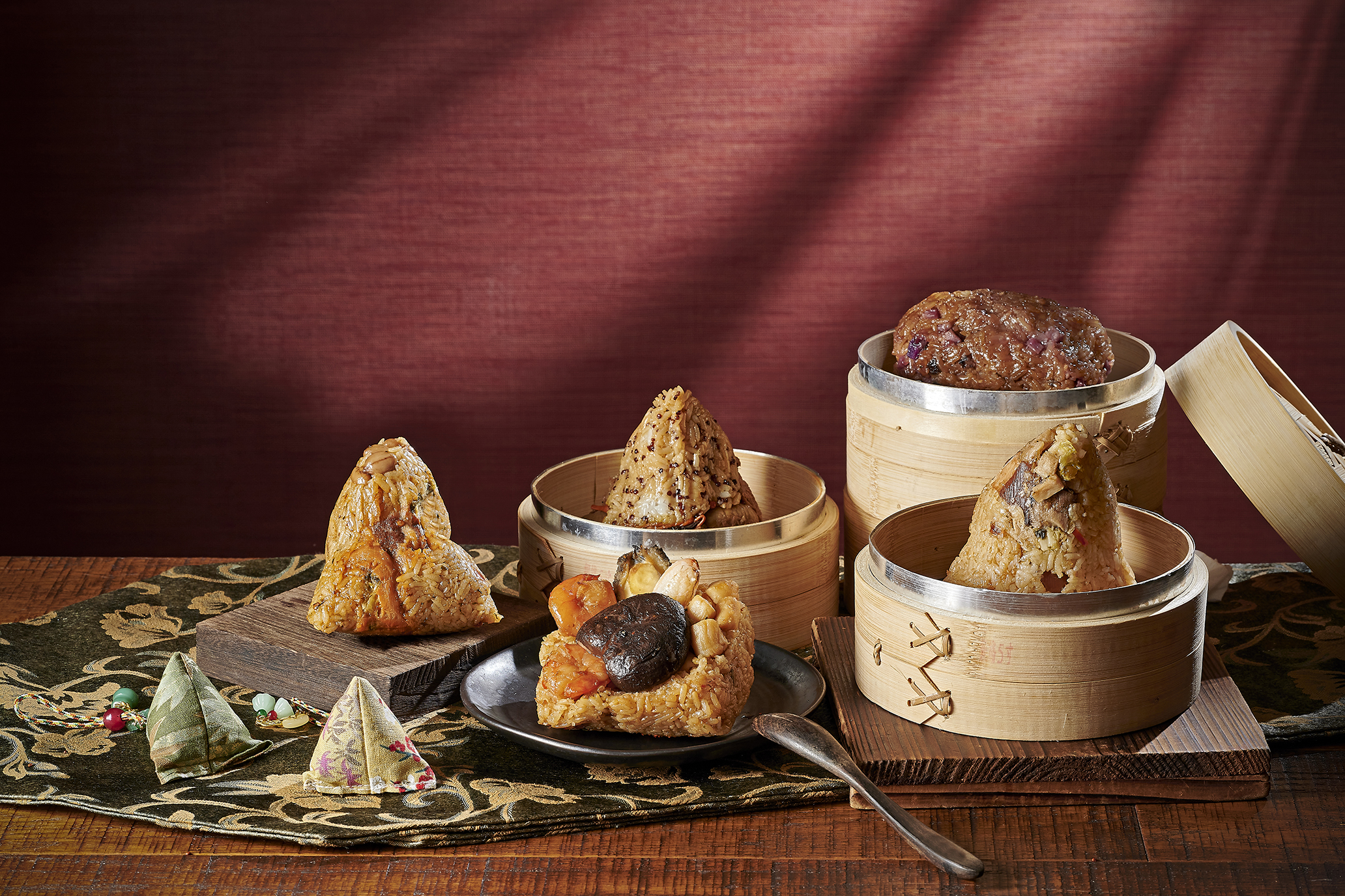 今年由飯店五星廚藝團隊嚴選多款高檔食材精心研發的五款端粽口味,首推回購率最高的【XO醬鮑魚海皇粽】,特選南非鮑魚、干貝柱、手剝草蝦仁、南投花菇、新鮮蟹鉗肉等食材霸氣入料,搭配主廚秘製頂級干貝XO醬拌炒的Q彈滑潤長糯米,極鮮精華與糯米完美結合,粽享山珍海味。二推【客家酸菜燜五花粽】,將醃製過的溫體豬五花,拌入傳統酸菜乾炒至香氣四溢,再將紹興酒醃製烘烤的鹹蛋黃入餡,包裹香菇、筍丁、碎脯、冬蝦等餡料,詮釋出道地的客家風味粽。