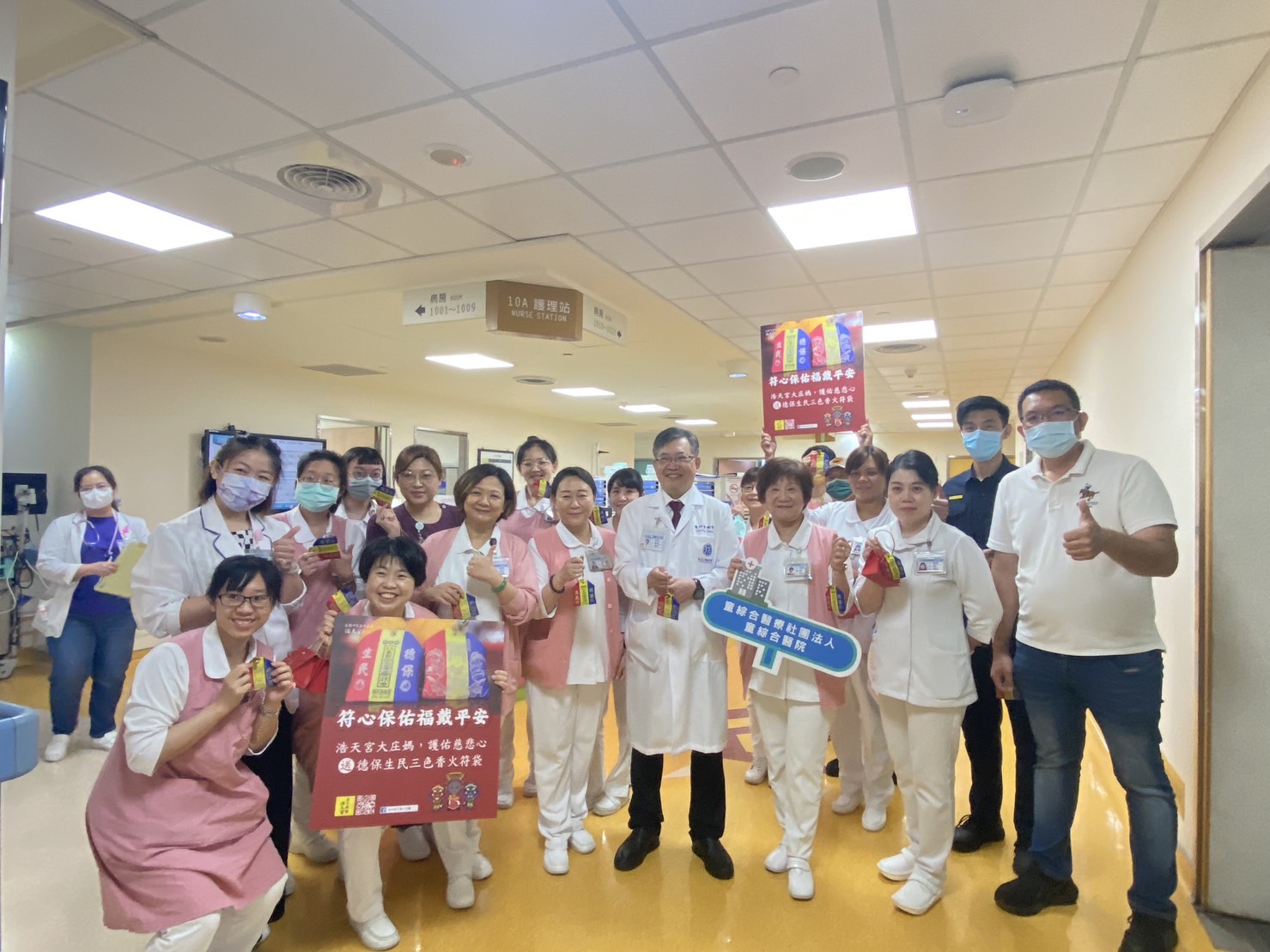 5月12日(農曆3月23日)為一年一度的媽袓聖誕,梧棲浩天宮準備600個德保生民三色香火符袋,由浩天宮管理委員會蔡棟樑副主委率隊,特地到童綜合醫院發送給看診與住院的病人,期望媽祖慈悲保佑身體早日恢復健康,並且給予心靈力量的支持。