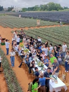 今日的活動也特地邀請日本友人至旺萊山享受鳳梨田園風光美景,並由旺萊山、春一枝以及樂檸漢堡共同協力籌備,除了甜美的當季鳳梨,更準備了日本旅客最愛-鳳梨酥、品牌聯名冰品-嘉義優鮮旺來冰、鳳梨雲感吐司等,讓與會貴賓徜徉在鳳梨香氣與風味中。