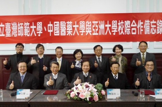 中國醫藥大學李文華校長、國立臺灣師範大學張國恩校長、與亞洲大學蔡進發校長為促進學術交流,並謀求教學研究之合作,於二十六日上午共同簽署校際合作備忘錄,希望能創造資源共享、三校三贏的環境。
