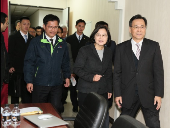 總統當選人蔡英文由台中市長林佳龍陪同,