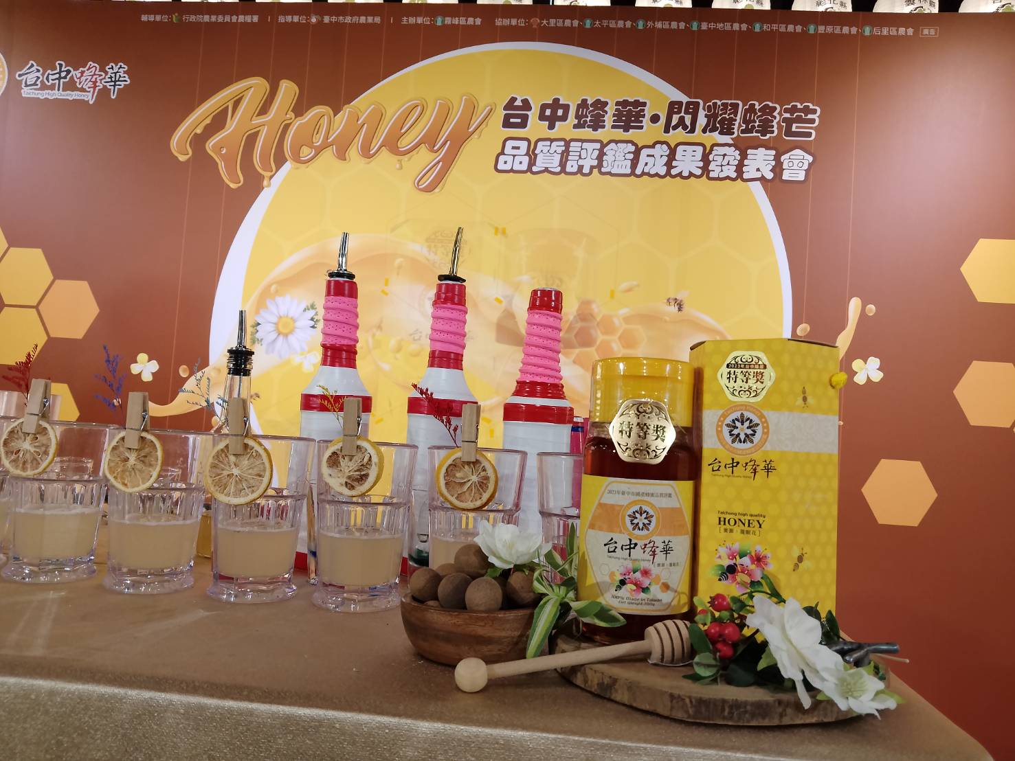 台中市政府為促進龍眼蜂蜜銷售及品質提升,確保蜂農及消費者權益,自創「台中蜂華」蜂蜜品牌,並自民國98年起舉辦台中市國產龍眼蜂蜜品質評鑑活動,今(112)年的評鑑成果已於日前出爐,共33位蜂農獲獎,其中10位獲特等獎、23位獲頭等獎。今(27)日的成果發表會,邀請到曾獲2016年世界花式女子冠軍的專業花式調酒師許釪婷.米鹿以「蜂蜜花式調飲」表演為活動揭開序幕。