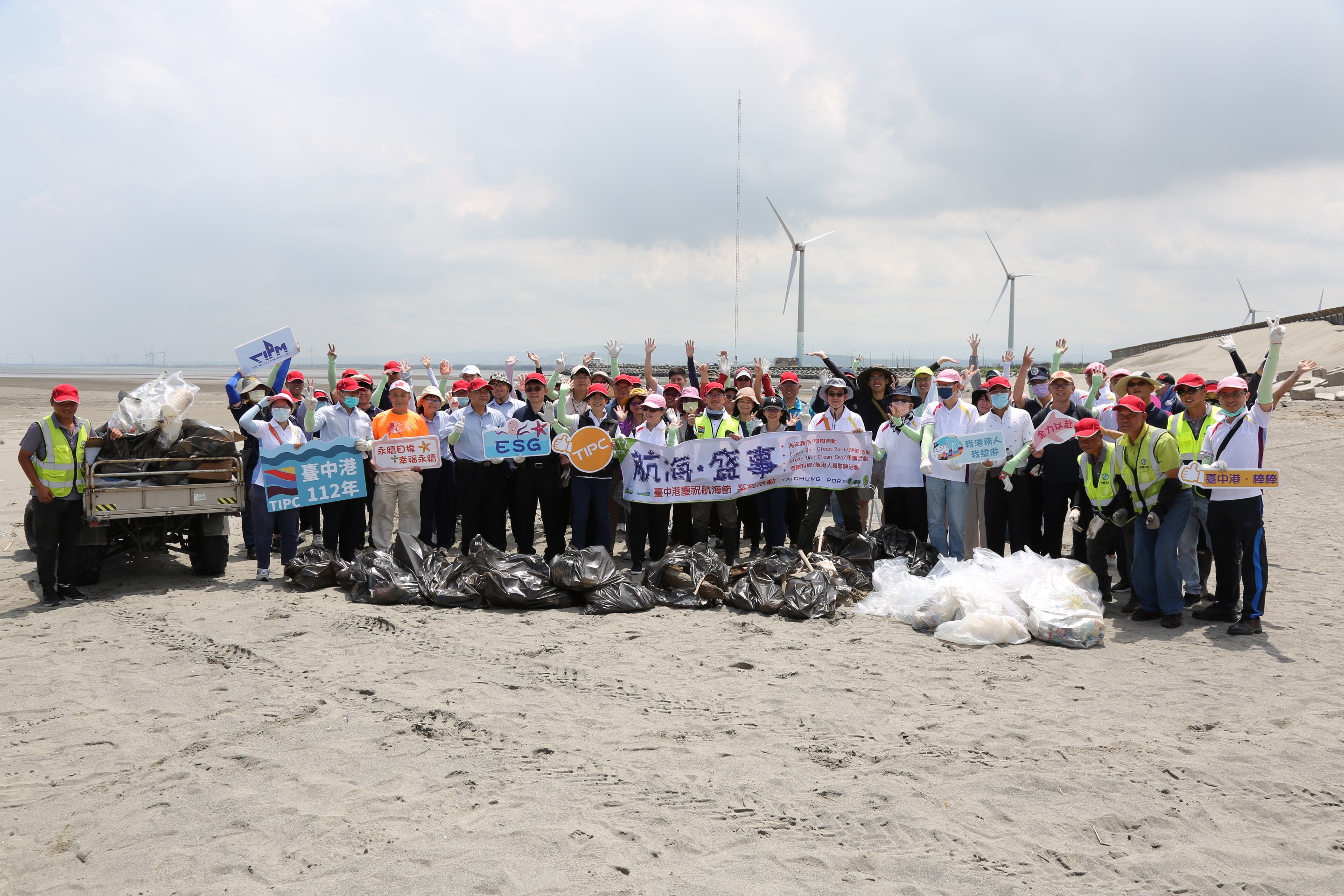 為慶祝航海節並配合行政院「向海致敬」政策,臺灣港務股份有限公司臺中港務分公司(下稱臺中港務分公司)肩負起ESG企業對環境保護的社會責任,於本(112)年06月30日的炎炎六月天,與臺灣港務港勤股份有限公司共同於臺中港海角明珠南側北淤沙區舉辦「112年Clean Up.Clean Sea淨灘活動」,北淤沙區綿延的海岸,在臺中港這幾年致力於海岸清潔之下,灘地上海漂垃圾已大幅減少,但潮起潮落仍會帶來海漂垃圾,所以現場可見被潮汐帶來的寶特瓶、塑膠殘片、浮球、樹枝等海漂廢棄物,今日由臺中港務分公司陳素芳主任秘書引領包含臺中港區域內政府機關、公(工)會等相關單位約120人不畏汗水淋漓在灘地撿拾,總計清理出約420公斤一般垃圾及80公斤可回收垃圾,以淨灘行動淨化灘地,共同守護海洋環境。