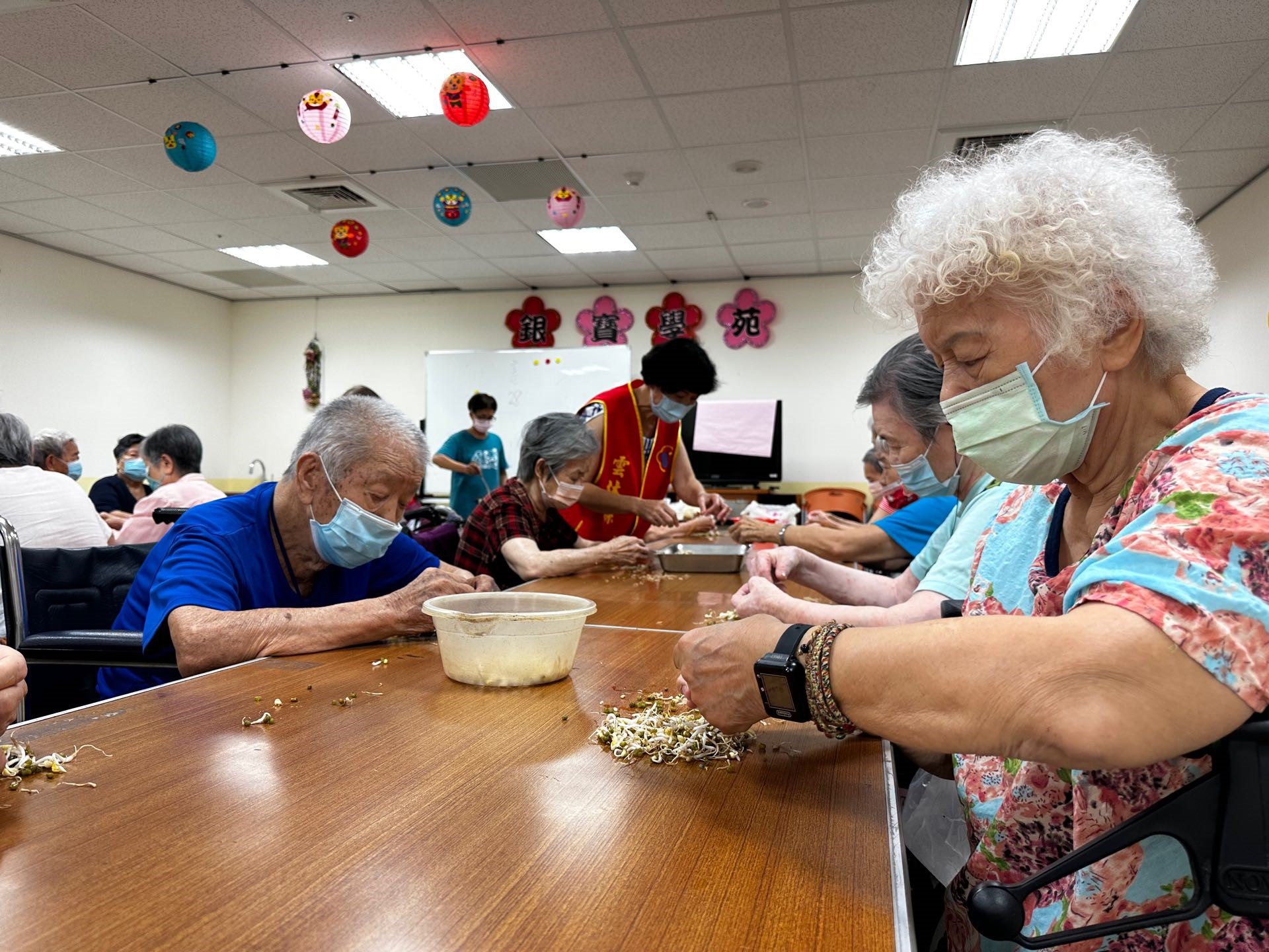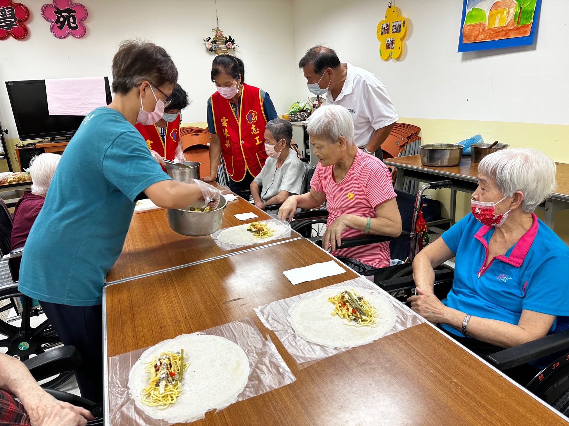 本次課程邀請到雲林縣榮欣志工張淑觀老師,張老師擁有中餐烹飪乙級證照,並經營農場種植種類甚多的蔬菜與水果,本次特地準備新鮮美味的菜餚有豆芽菜、紅蘿蔔、高麗菜、綠竹筍等天然健康食材,課程一開始還帶領長輩們一起動手製作清涼的百香果汁、剝豆芽等訓練精細動作,長輩們邊剝豆芽菜邊回憶以往做菜的經驗,各個認真又投入,接著在榮欣志工、斗六家商志工和靜宜大學暑期實習生的協助下一起動手製作美味的春捲,過程中同時體驗到製作的趣味。