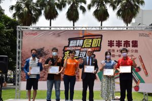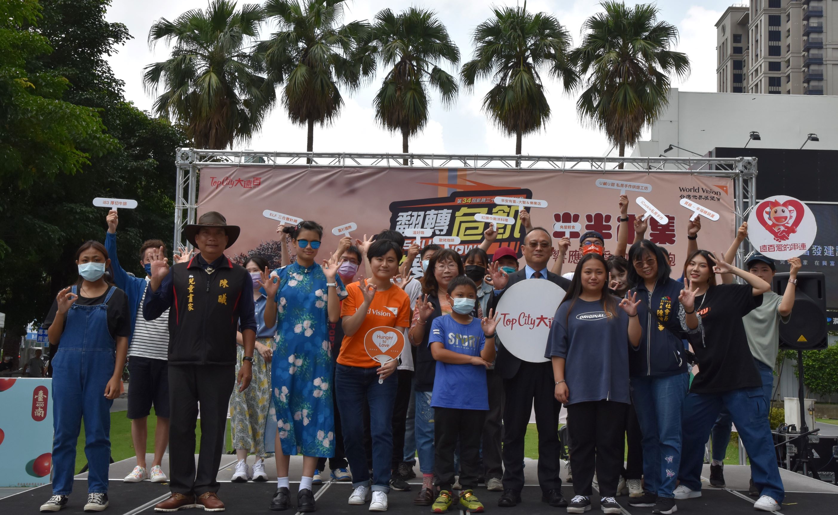 台中市政府社會局廖靜芝局長、台灣世界展望會市場行銷處邱思芸處長、TOP CITY 大遠百代表張東明副店長、三合豐針織有限公司張靜怡經理、溫咖好咖啡林盛彥先生、民生食品工業股份有限公司(紅頭巾南洋料理)洪睿麒先生、角屋手創黃元亭小姐、贏杉國際張復鈞先生、歐咾咖啡賴文鴻長老以及i83厚切牛排曾建達先生一同來到市集現場,響應飢餓三十活動。