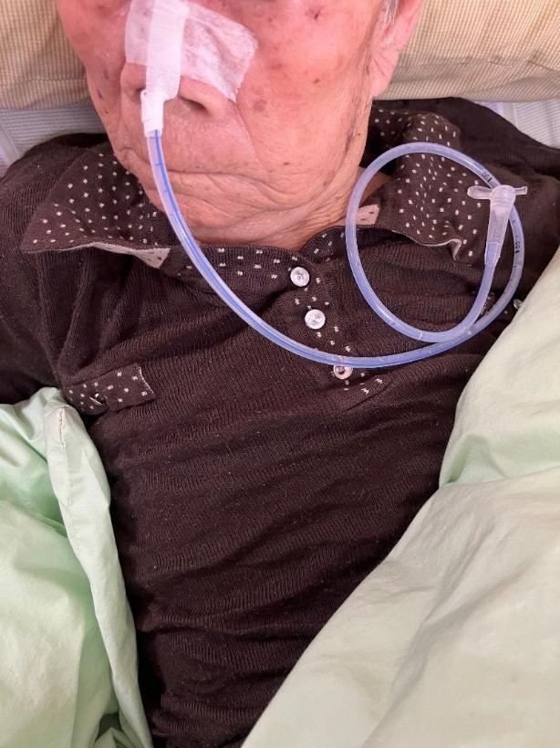 統計台灣吞嚥障礙人數約在40萬人口數,鼻胃管留置人數,更上升至45萬人,鼻胃管留置是長照機構養護住民常見的醫療處置,鼻胃管長達60公分,當協助住民翻身或照護時,常容易因鼻胃管路的拉扯,導致鼻胃管滑脫,甚至引發吸入性肺炎等致命併發症。榮家為增加吞嚥功能退化嚴重、鼻胃管留置的長輩舒適性,減少鼻胃管拉扯滑脫等現象,榮家醫護同仁集思廣益,結合縫紉部的縫製,產生了「管路安心收納袋」的創意照護。