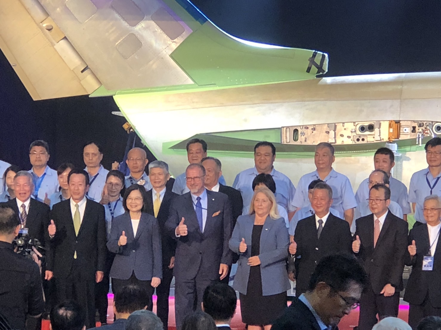蔡總統說,漢翔透過和龐巴迪合作,在電腦輔助設計工程管理中,擁有重要技術突破,集結國內14家廠商,建立穩定供應鏈,讓台灣航太產業得以在國際競爭。