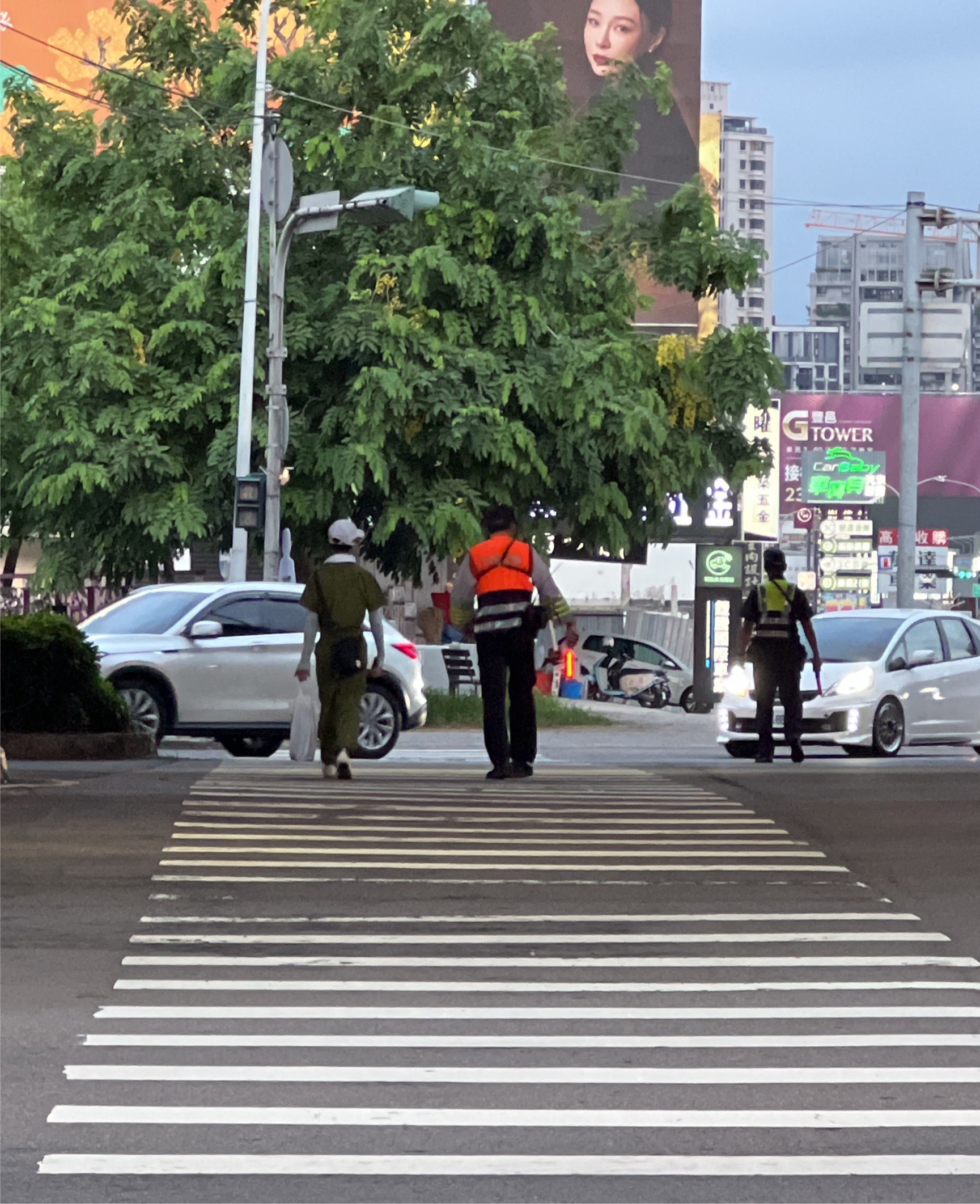 臺中市交通義勇警察大隊南屯中隊副中隊薛淑玲表示,能有年輕人願意投入義交服務,感到非常喜悅,紀峰瑞這幾個月跟著老鳥義交一起執勤,久了也能獨當一面。