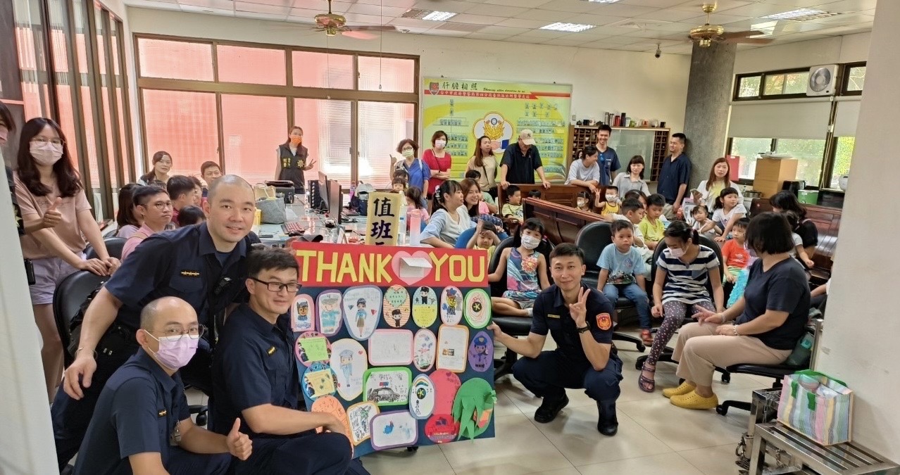日前忠明國小附設幼稚園40名小朋友至臺中市政府警察局第四分局春社派出所參訪,由副所長黃哲彥、偵查隊偵查佐林佩君及志工團們接待,對於第一次踏進警所的小朋友來說,充滿了新鮮感,除了可以變裝穿上警察制服,騎上仿警用摩托車迷你款的機車,過足當警察的帥氣夢想外,針對9月份的全國交通安全宣導月,宣導「車輛慢看停 行人安全行」,員警更是大聲疾呼,絕大多數兒童交通事故都發生在過馬路時,絕對不要橫衝直撞,將交通安全觀念向下扎根,為幼童安全加分;活動結束,全體小朋友回贈卡片,看到一張張出自小朋友親手繪製的圖案,簡單的注音符號拼湊表達出最純真誠摯的感謝,讓員警直呼好可愛,並允諾將此作品張貼在警所最顯眼處,成為最溫暖的招牌。