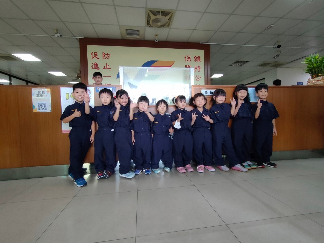 這次參訪中,意外的亮點就是參與其中的副所長黃哲彥,帥氣的外表加上一張與藝人浩子相似度極高的外型,以詼諧幽默的方式介紹警察日常,惹得小朋友哈哈大笑,顛覆原本認知警察叔叔嚴正執法抓小偷的形象,親和力十足,會後的巨型感謝狀,有別於以往制式的格式,小朋友親手繪製的畫作,更能打動人心,讚嘆現在的小孩的創意無限,並在歡聲笑語中圓滿結束此參訪活動。