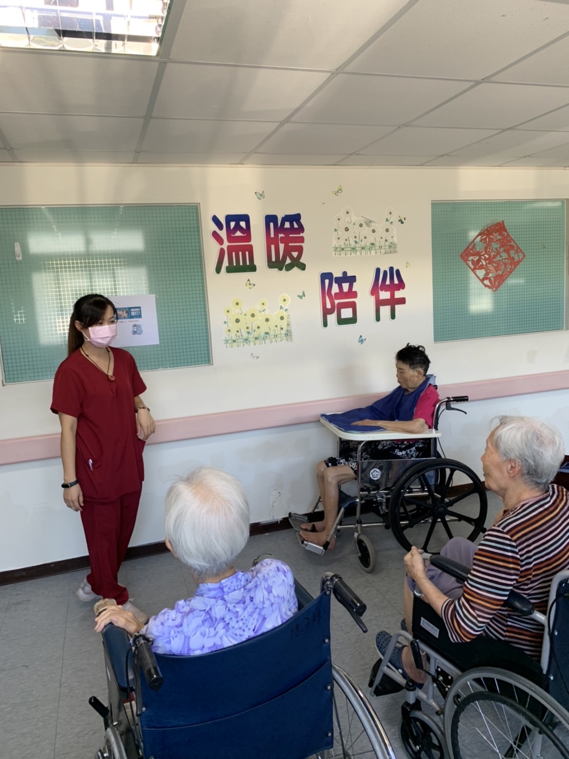 接著由護理師進行流感衛教並鼓勵施打流感疫苗,秋冬季節的變化容易導致人們抵抗力與免疫力下降,住民需要注重身體保健、均衡營養、適度運動,以提升自我抵抗力,此外個人良好衛生習慣之重要性,包括勤洗手、注意呼吸道衛生及咳嗽禮儀、並保持社交距離如有呼吸道症狀者應戴口罩共同守護大家的健康。
