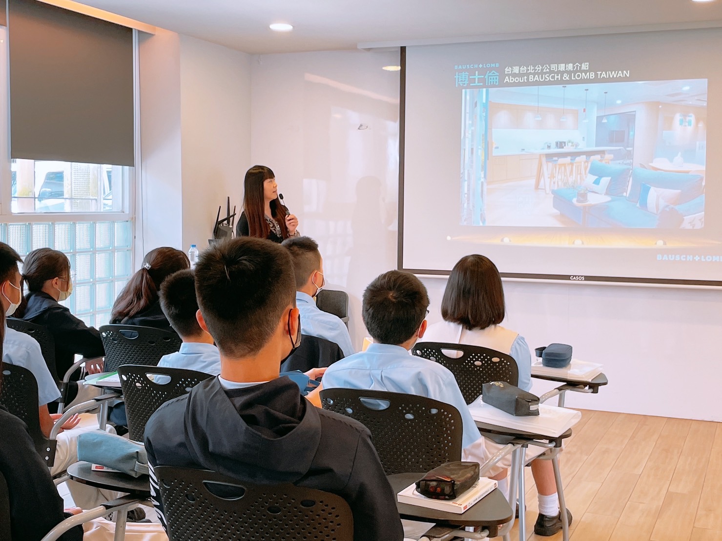 劉曉萍老師指出,美商博士倫於1980年在臺灣成立分公司,包含隱形眼鏡與相關護理產品,此次特別邀請台北總公司行政主任到校演說,讓學生了解該品牌如何在消費族群上做不同設定與講師最擅長的客服經驗,也切合國一國際商管課程課程核心「消費者行為模式」。藉由講師的分享,學生了解臺北總公司的上班環境與會議室的設計,對於未來職場的選擇也有了藍圖,此外,講師也初步剖析現今新品發表、承辦醫學會的重要性,讓學生更深一層的了解產業運作與創新。