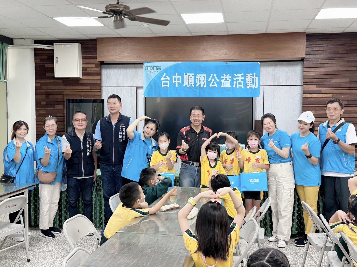 霧峰區公所白峨嵋區長,也非常重視今日捐贈活動,特別指派社會科李科長,及本堂里林錦池里長到場關心,捐贈儀式結束後,台中順奕教育中心也安排了賴文雅講師,對到場的小朋友進行潔牙及環保觀念的宣導,賴文雅護理師同時捐贈了3000元助學金,幫助學校清寒家庭學生。