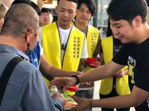 天下財富負責人林柏君浪子回頭,攜手希望愛生命關懷協會、台中市記者協會輔導理事長陳羿翔、市議員羅廷瑋、市議員黃仁太太王春梅、市議員江肇國服務處副主任林聖翰、藝人朱琳及歌手陳凡騏,關懷因小犬風災肆虐後,生活更為艱難的遊民,除發放便當外還貼心準備小紅包,讓遊民風災後也能感受到社會的溫馨。林董感謝大家全程參與公益活動圓滿完成。