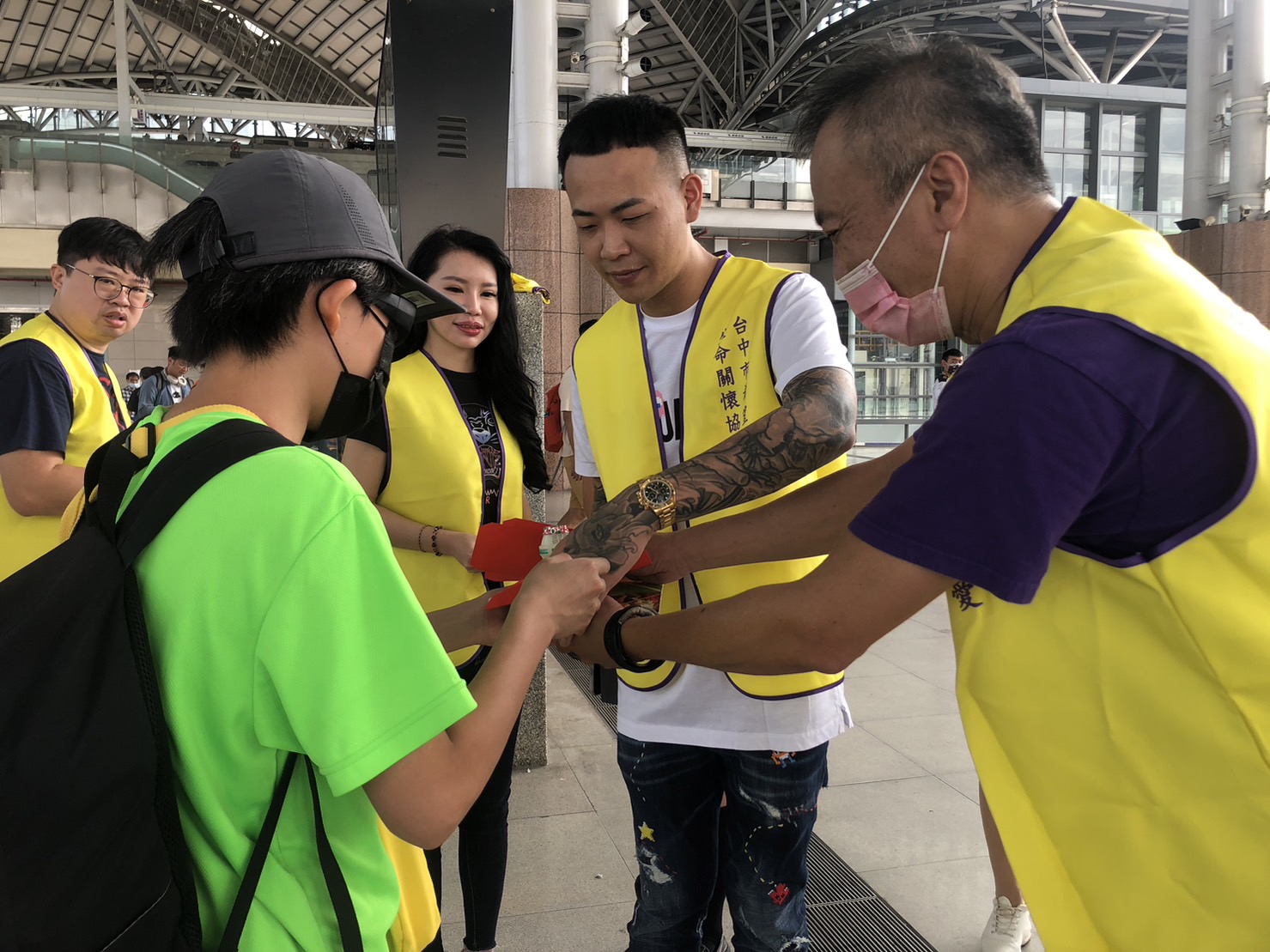 圖:天下財富負責人林柏君贈慰問紅包給遊民。