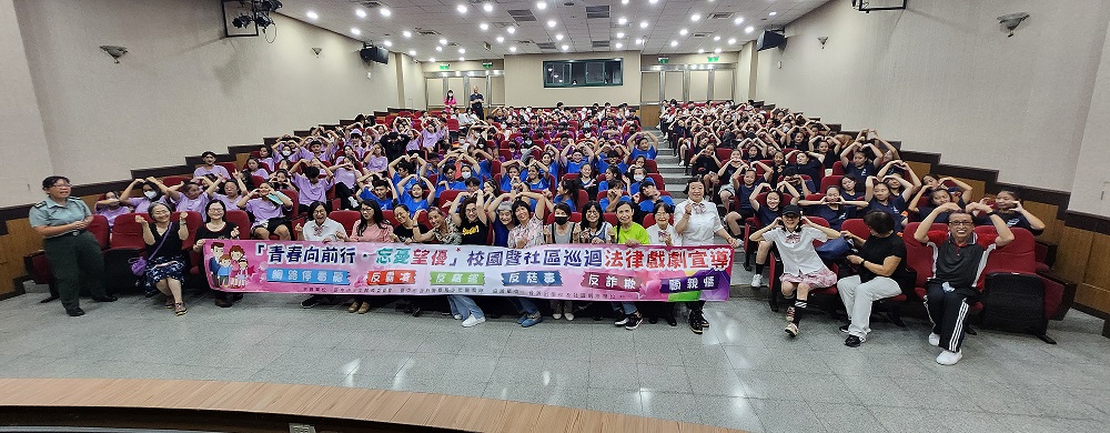 為強化少年及社區民眾正確的預防犯罪觀念,臺中市政府警察局少年警察隊特責由少年輔導委員會結合志工,將「竊盜」、「毒品」、「詐欺」及「兒少性剝削」等青少年易觸犯或被害之犯罪議題,以及「校園霸凌」、「青少年家庭關係」、「網路交友」等人際互動議題,以戲劇表演方式生動呈現情境,讓宣導內容更平易近人、深植人心。