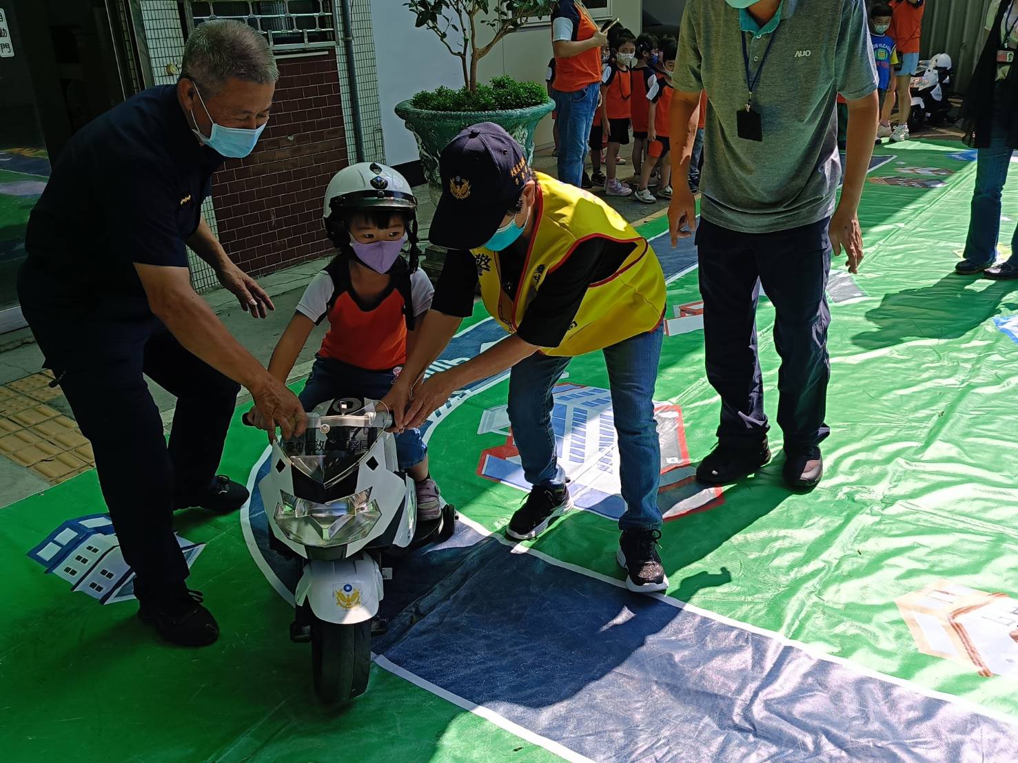 大安分駐所所長顏宥騏表示,為增進小朋友交通安全知能,加深宣導印象,不僅出動了超帥的警用大重機,更找來了超萌的小哈雷警用機車進行「模擬道路」遊戲體驗,運用多元創意宣導方式,讓安全觀念從小紮根,藉由遊戲互動中寓教於樂,瞭解警察工作內容,讓小朋友不再有以往害怕警察的思維,達到正面宣導的效果。