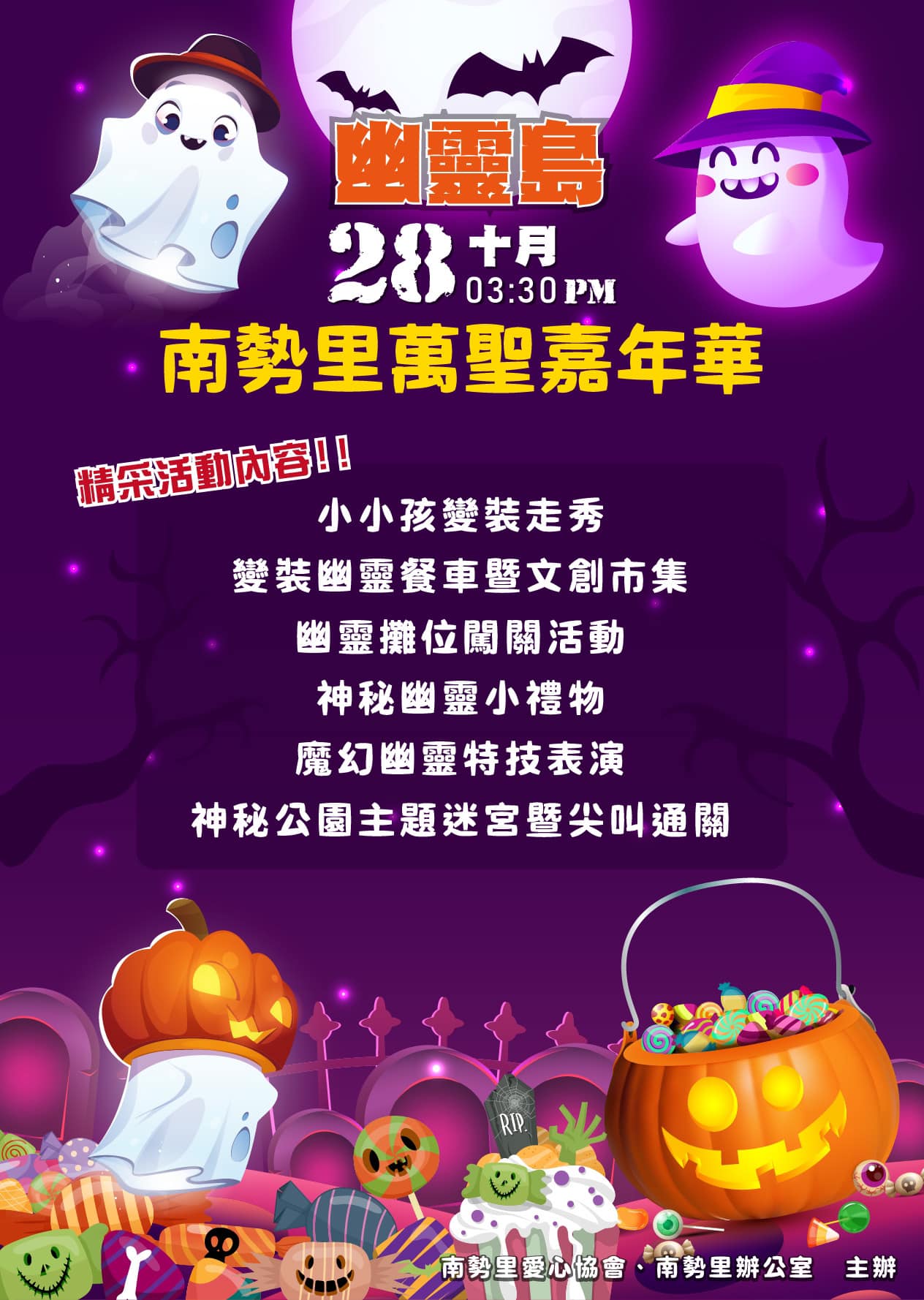 南勢里王里長將於10月28日(六)舉辦一場南勢里萬聖嘉年華,為了讓整個嘉年華更有萬聖氣氛,王里長下重本規劃了「鬼屋」讓民眾好好感受西洋萬聖節!另外還準備了限定KP馬林糖,限量版1000個;更用心備了1萬支棒棒糖供現場大人小孩領取;其中三鹿里保安宮主委陳鴻文更是贊助5支(iPhone 15)讓參與民眾抽獎!