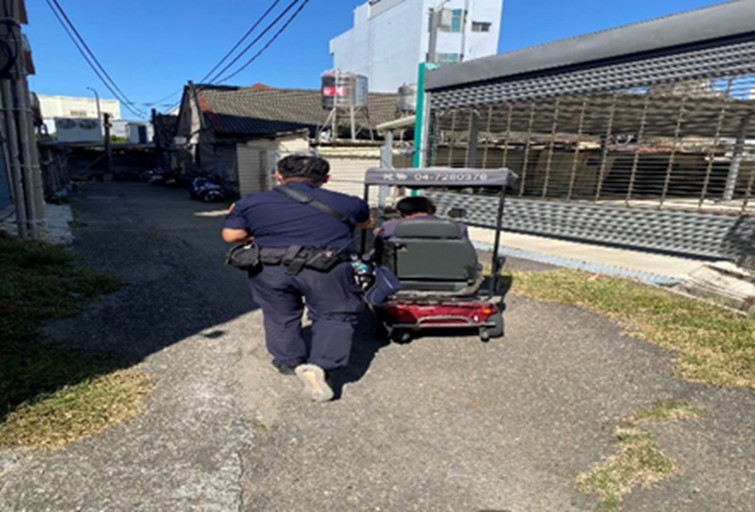 和美鎮陳姓老翁手腳不便,駕駛電動代步車外出購餐,卻因不明原因拋錨卡在路中動彈不得,和美分局和美派出所警員接獲熱心民眾報案,和美鎮和利路段有老翁乘坐電動代步車拋錨,警員獲報後迅速到場,因適逢中午時分,天氣炎熱,員警擔心老人家身體健康狀況,第一時間先聯繫車行協助處理,車行表示假日休息未能提供服務,警方合力將老翁之代步車徒手推行約1公里返回彰美路6段住家,老翁返家後對警方全方位暖心服務表示讚譽有加。