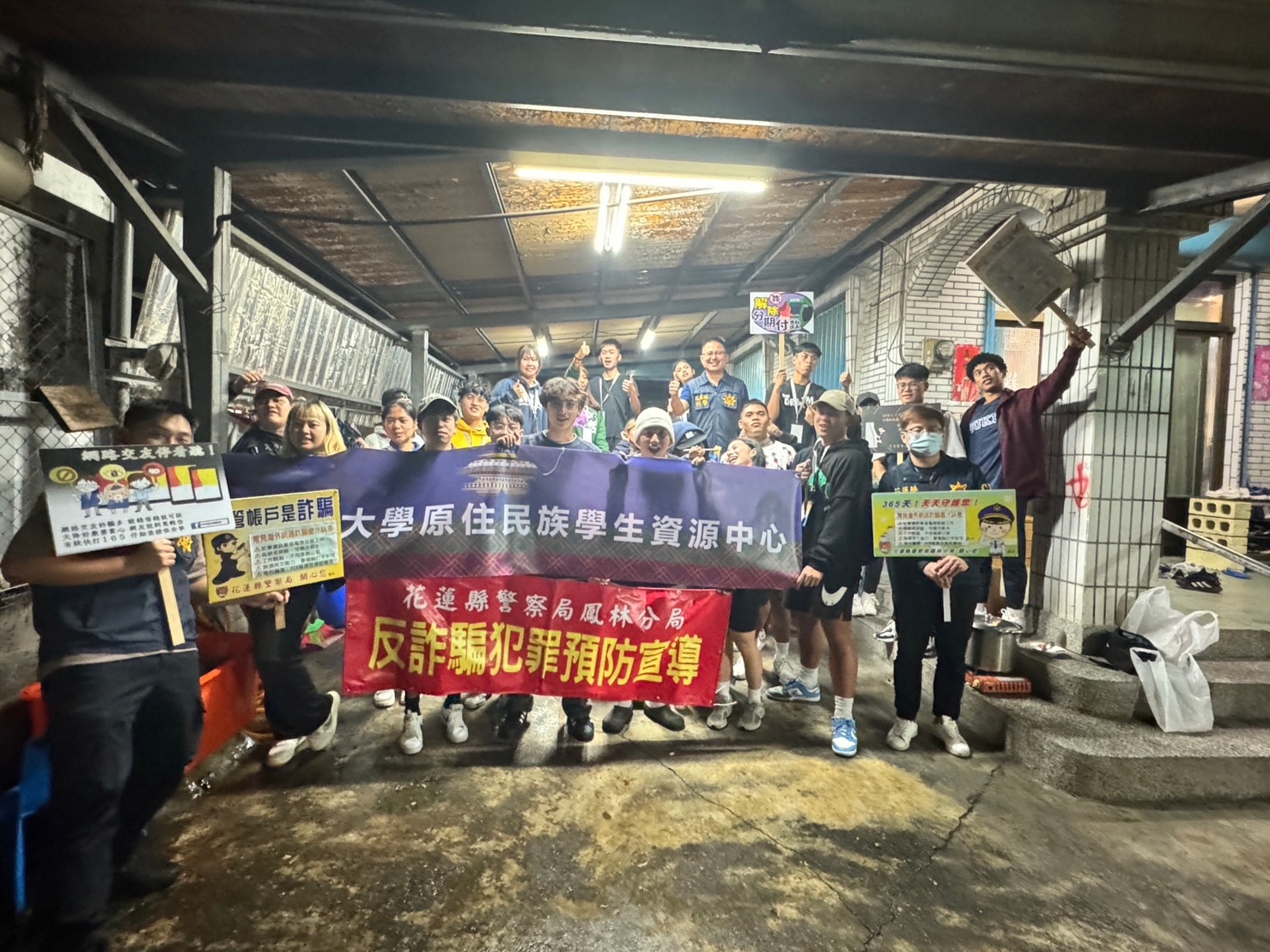 鳳林分局為推行全齡識詐,加強學生的防詐觀念,提升防詐免疫力,藉國立體育大學原住民族學生資源中心前往萬榮村進行社區服務時,辦理識詐宣導,強化學生反詐意識,避免更多學生受害。