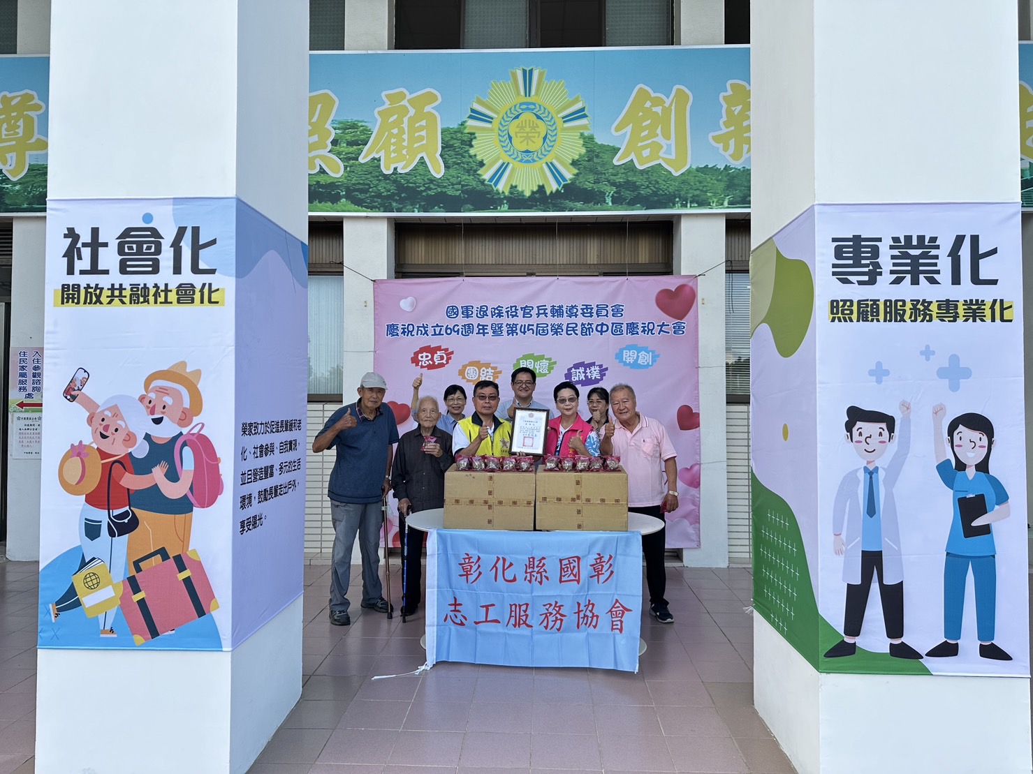 為歡慶一年一度的榮民節,國彰志工隊吳臺花理事長,於今(30)日上午至中彰榮家慰問長輩們,並致贈彰化名產「桂圓蛋糕」,表達對榮家長輩的關懷之情,提前祝賀長輩們榮民節快樂。