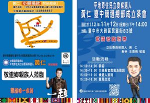 地方新聞臺中市中國國民黨平地原住民立法委員候選人黃仁 11月12日台中競選總部成立 榕嫻2 年 ago2 年 ago01 mins 1121112台中成立茶會邀請卡 文章導覽 Previous: 嘉義酒廠高粱酒文化節暨愛心園遊會 共同支持若竹兒教育基金會Next: 環保志工歌唱大賽 屏東警反詐騙 發佈留言 取消回覆發佈留言必須填寫的電子郵件地址不會公開。 必填欄位標示為 *留言 * 顯示名稱 * 電子郵件地址 * 個人網站網址 在瀏覽器中儲存顯示名稱、電子郵件地址及個人網站網址,以供下次發佈留言時使用。