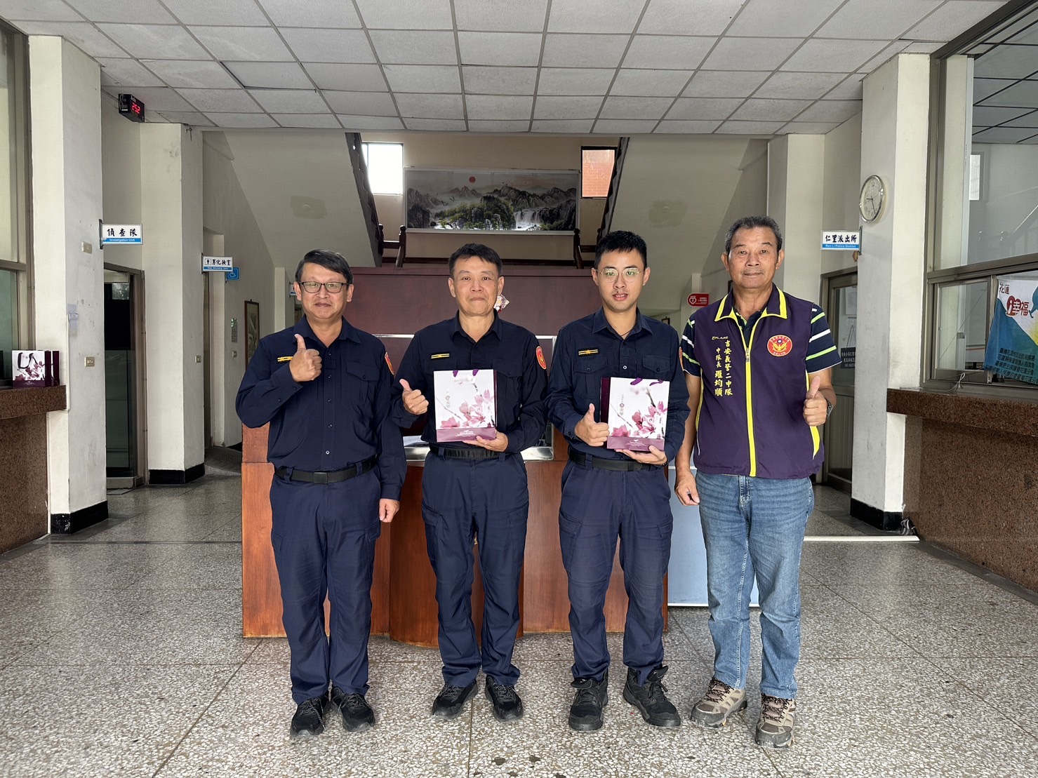 吉安義警第二中隊顧問團為感謝吉安警分局北昌所、光華所及稻香派出員警共同偵破邱姓連續竊取轄內銅線案之辛勞特頒發破案茶,義警二中隊顧問團主席李盟德因另有公事,於今(8)日委託中隊長羅均順頒獎,感謝警察同仁對維護治安工作的付出與優良傑出表現。員警積極維護地方治安、交通及為民服務工作不遺餘力,李主席表達肯定與嘉勉之意,希望藉由破案茶的頒發,達到適時鼓舞員警士氣的目的。