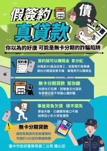 有鑑於詐騙案件層出不窮,打詐刻不容緩;為提升這群國家未來棟樑的「防詐」、「識詐」知能,避免青少年遭到不法集團吸收利用為詐騙車手,中市警二分局近期陸續至「國立臺灣體育大學」、「臺中二中」等北區各級校園進行入班宣導,期望藉由這種小班制宣導能更加充實學生犯罪預防知能,並針對不同年齡層學生設計快速辨別詐騙手法及有效因應方式的「懶人包」,提升自保及辨識能力。
