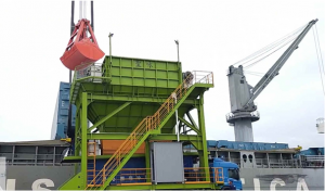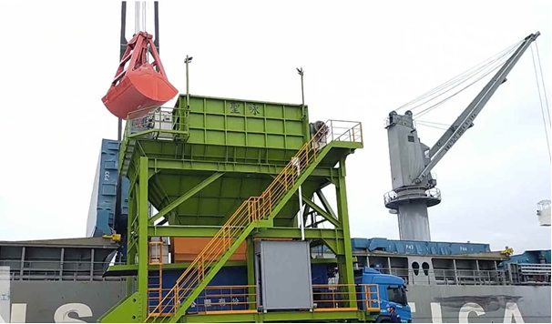 臺灣港務(股)公司臺中港務分公司(下稱臺中港務分公司)致力於改善裝卸揚塵不遺餘力,定期舉辦裝卸作業滾動檢討會議以輔導港區業者投入裝卸機具設備改善,近年來以鹼粉裝卸機具精進更為顯著,先前輔導業者於109年新購2組集塵式漏斗及油壓密閉式抓斗,抑塵效果可提高約八成,裝卸效率大幅提升約六成,綜效明顯優於傳統抓斗與漏斗,促使其他業者本(112)年跟進亦添購2組同質性機具,為港區環保式機具再添生力軍。
