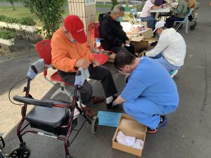 今(17)日上午8:30在榮家中央走廊辦理鞋墊評估活動,護理師黃學成在旁協助引導攙扶長輩完成基本資料登記,治療師對有需要矯正鞋墊的榮民們,進行腳掌尺寸取樣和評估,將根據個人需求製作鞋內墊以搭配皮鞋,有效紓緩腳部不適和矯正姿勢,提供更好的支撐和舒適性,以提高他們的步行能力和行動安全。榮民對可以改善下肢的痠痛或不適感的客製化鞋墊都很期待,紛紛拿著自己的證件趕快來登記、並交由技師幫忙評估、調整功能、更換新零件…等。