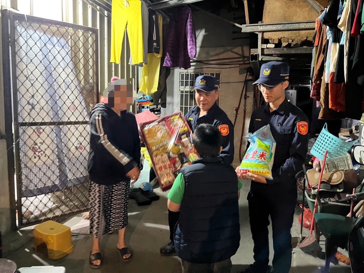 黃所長認為梅家確實急需協助後,遂會同地方熱心人士黃金波先生購買生活物資,並由光華所黃所長及勤區員警親自將物資送往梅女士家中,恰巧當日為梅小弟生日,梅女士十分感謝警察同仁及地方人士送暖。
