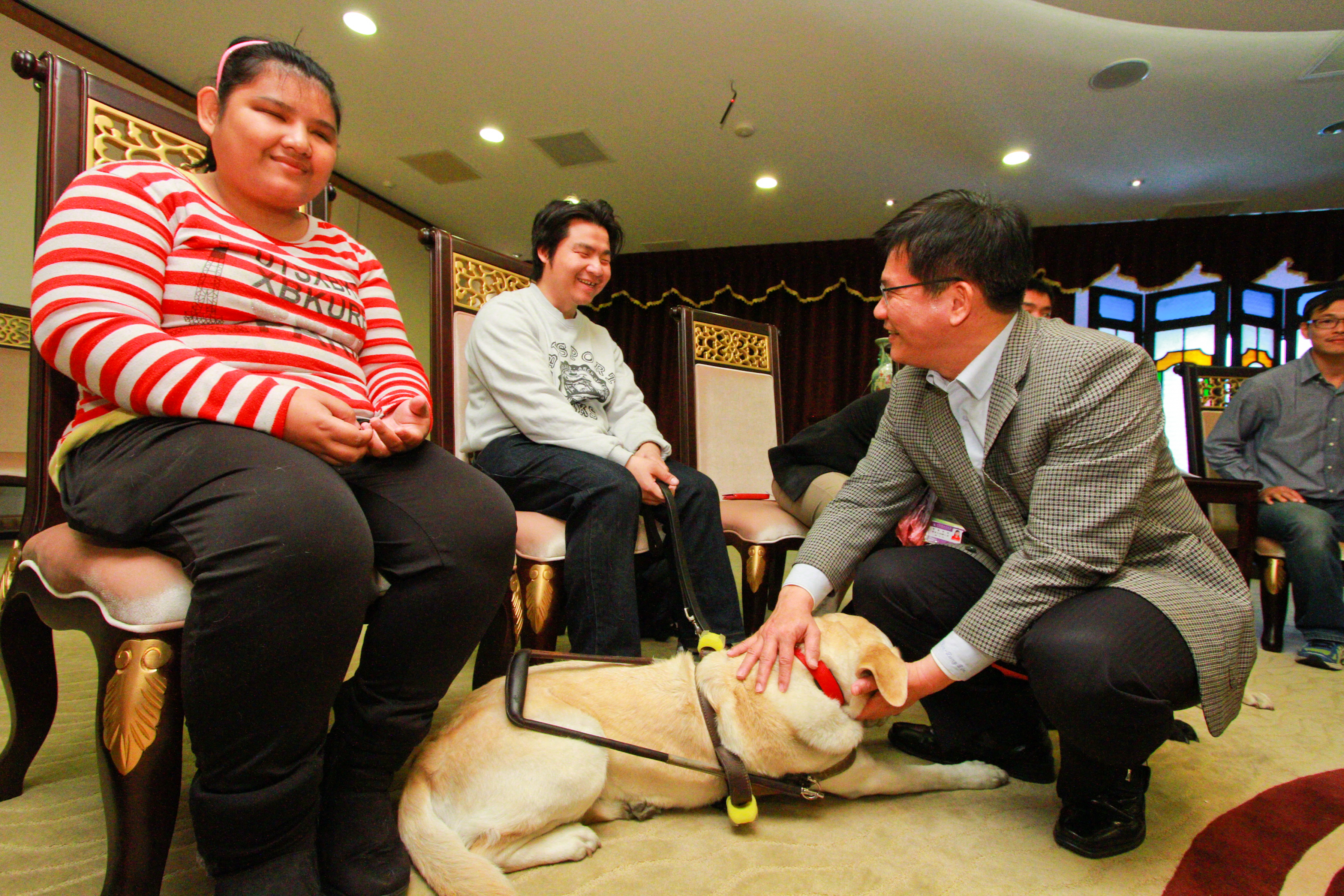 台灣導盲犬協會中部辦公室主任黃一山一行人於三日帶領十一隻可愛導盲犬至台中市政府拜會市長林佳龍,表達導盲犬因社會認識不足、屢遭拒絕的困境,林市長允諾普及導盲犬觀念,研議運用公益彩券基金補助飼育費用,減輕視障者負擔,並落實無障礙友善環境,打造視障朋友都能自在通行的「生活首都」。