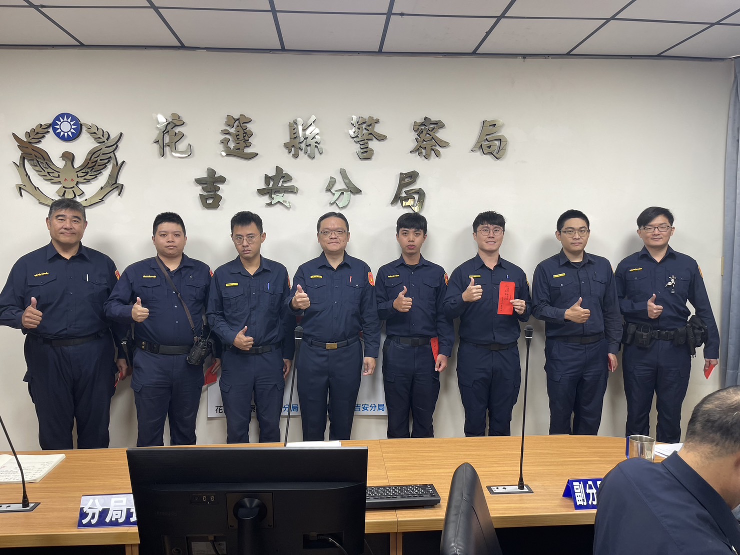 為肯定並慰勉吉安警分局員警守護吉安鄉居民用路安全,及凝聚團隊向心力,提高激勵工作士氣,分局長康健浚特別於今(23)日週報會議機會,頒發10月份路安專案表現突出人員獎勵金,以資表彰及感謝堅持崗位、為轄區交通打拚的努力與付出,康分局長也希望藉由此次績優員警的公開表揚,激勵每位同仁都能秉持「標竿學習」及「捨我其誰」的精神,持續強化刑案偵防、加強交通疏導執法及提升為民服務品質「優質警政」的目標努力。
