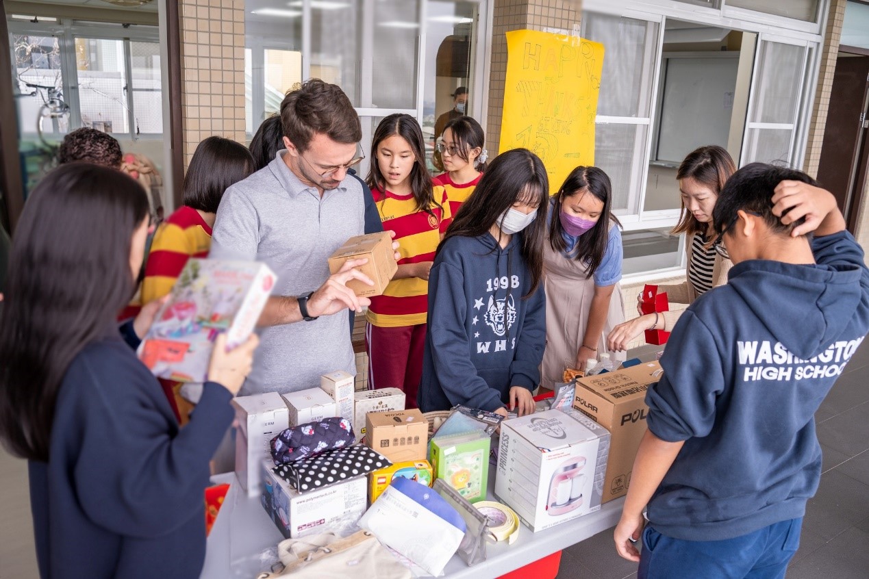 每到感恩節,臺中市華盛頓中學國際部都會舉辦「感恩愛心義賣」活動,由學生會負責統籌主辦,邀請同學與師長們檢視家中用不到的物品,帶到校園做義賣。這次義賣所得將全數捐贈「社團法人台灣黑皮狗狗山友善動物協會」,發揮友愛動物與實踐關懷之心,讓愛與善得以延續。國際部與狗狗山的合作已達4年,狗狗山相當感激國際部的關懷與貢獻,讓需要被關愛的毛孩得到幫助。
