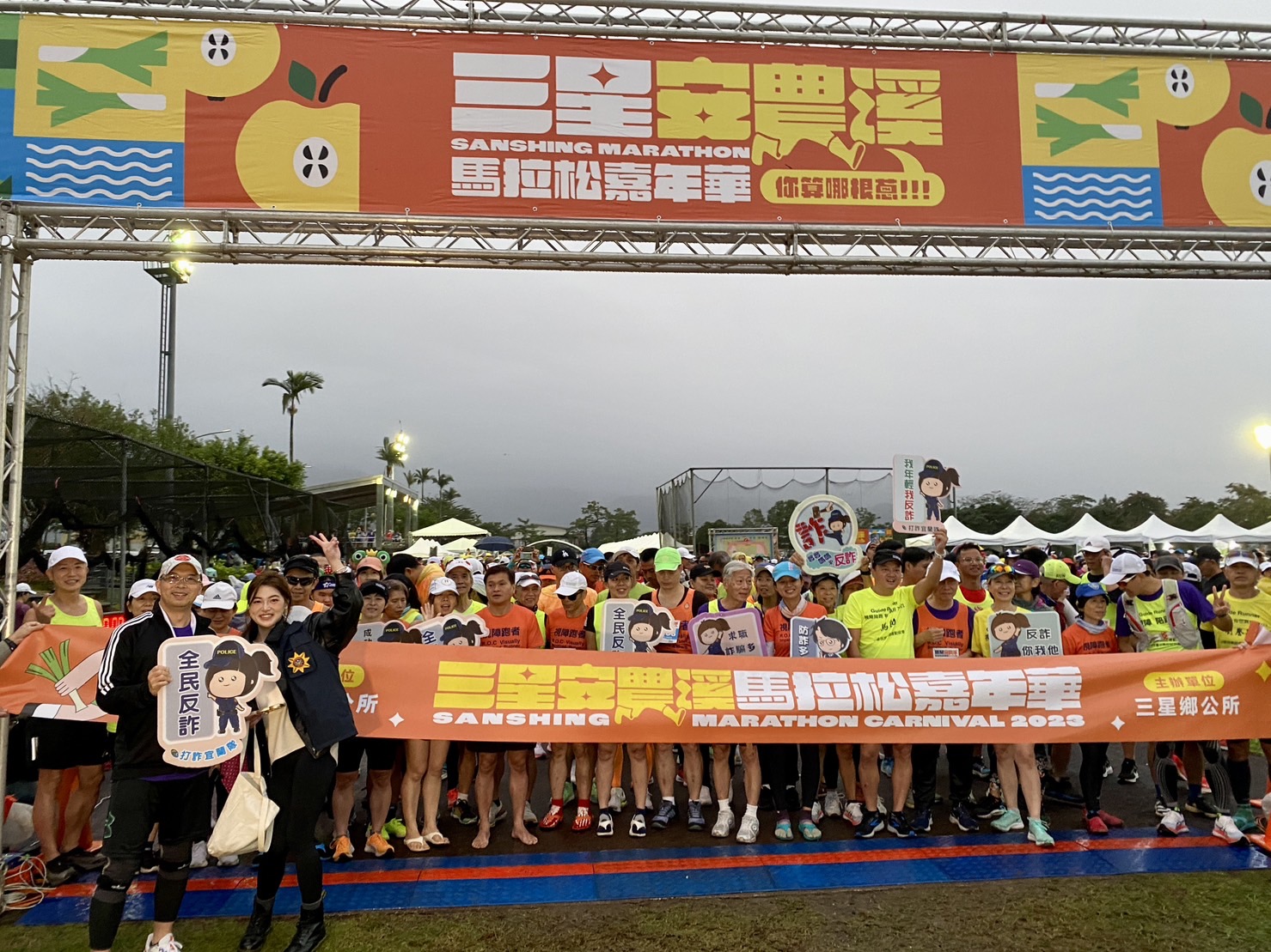 2023三星鄉安農溪馬拉松嘉年華活動於12月3日清晨在三星鄉綜合運動場盛大展開,活動吸引將近4,000名參賽者及三星鄉親擠爆會場,三星分局分局長蔡宏澤率同各級幹部特別在起跑區一同為跑友加油,同時進行識詐、反賄、交通安全宣導,建立全民反詐、反賄選,及交通安全等相關知識。